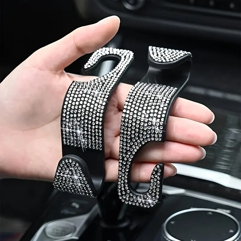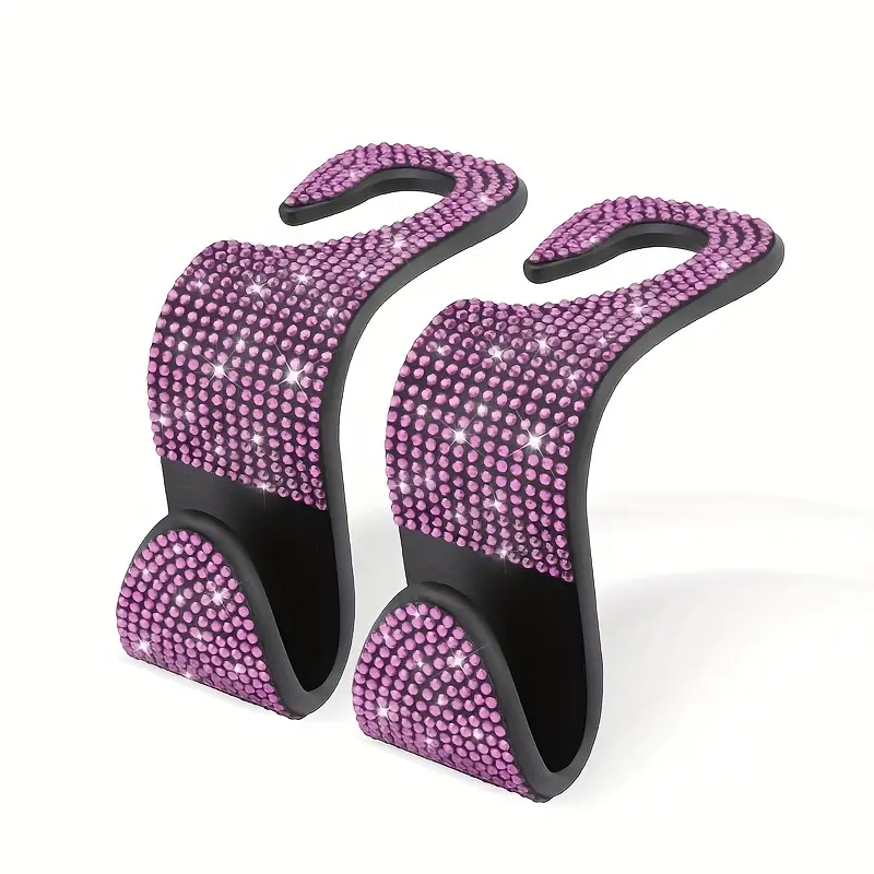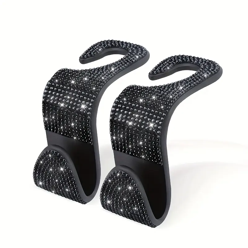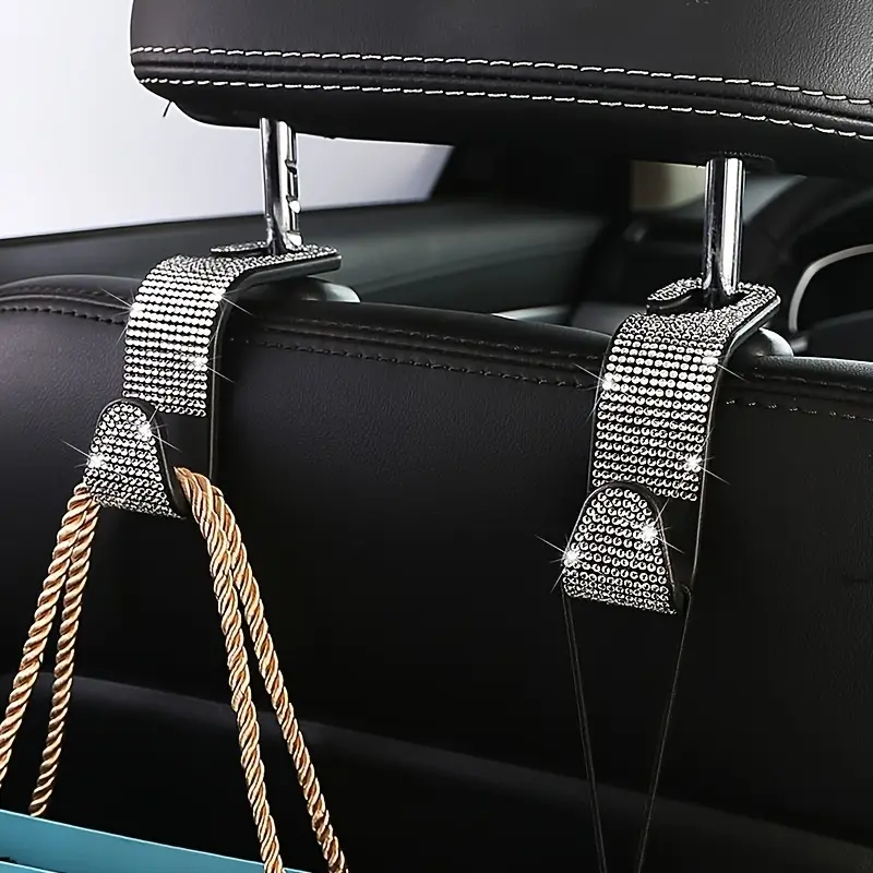 Set of 2 Dazzling Sequined Diamond-Studded Car Back Seat Headrest Hooks - Stylish Car Handbag Holders with Adjustable Shoulder Straps - Luxurious Car Interior Additions Suitable for Both Men And Women, Perfectly Fitting Handbags, Wallets