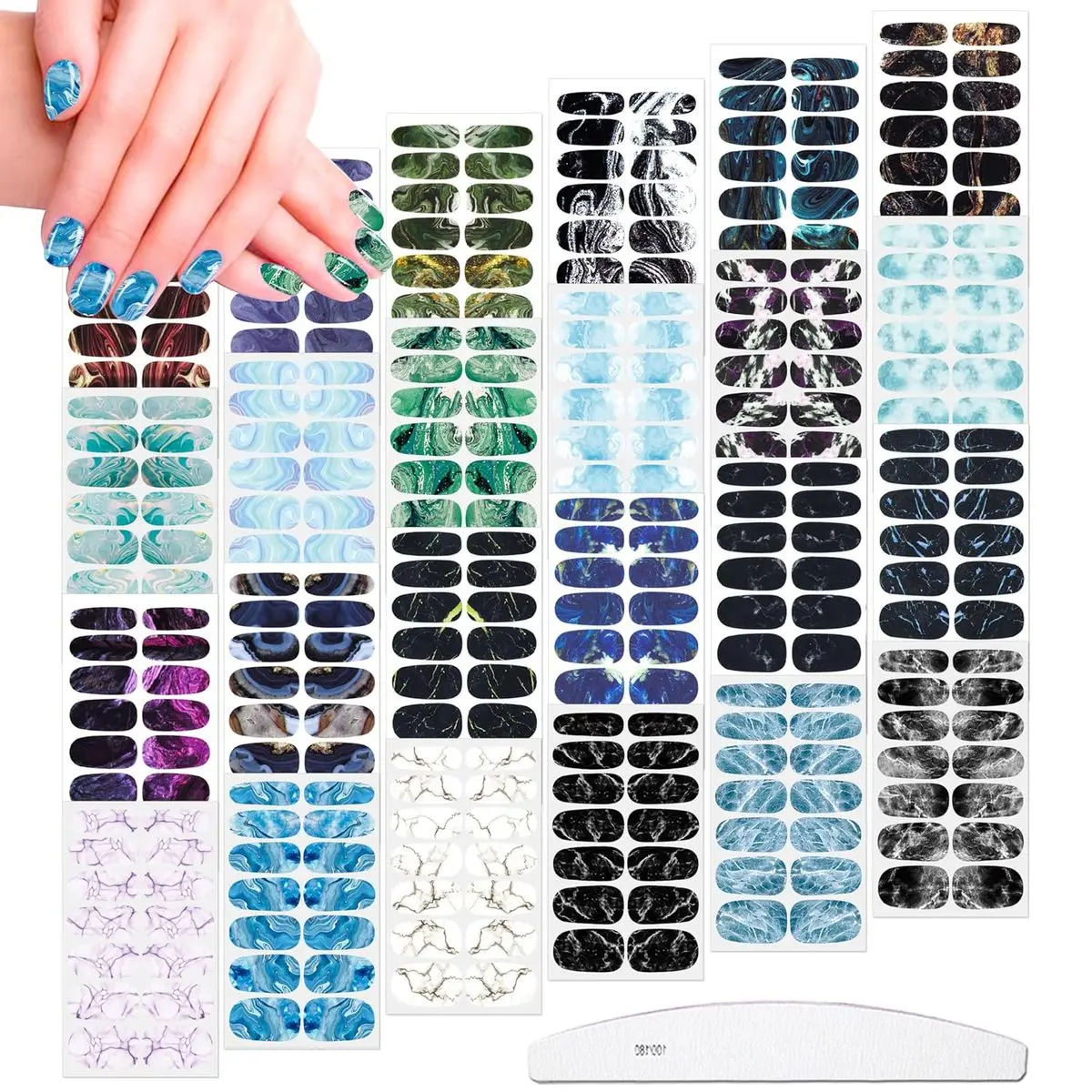 PACKAGE CONTENTS-Comes with 24 sheets (10 solid color nail strips +10 marble nail wraps)full nail stickers in different patterns and sizes, each sheet contains 14 pieces, totally 336 pieces, sufficient to meet your DIY nail art decoration needs, comes with 1 piece moon shape nail file, can bring much convenience to the DIY process.