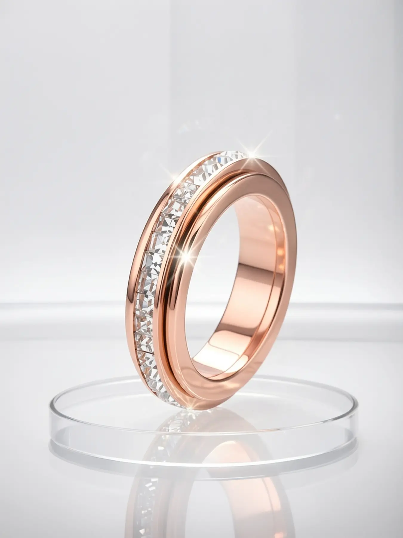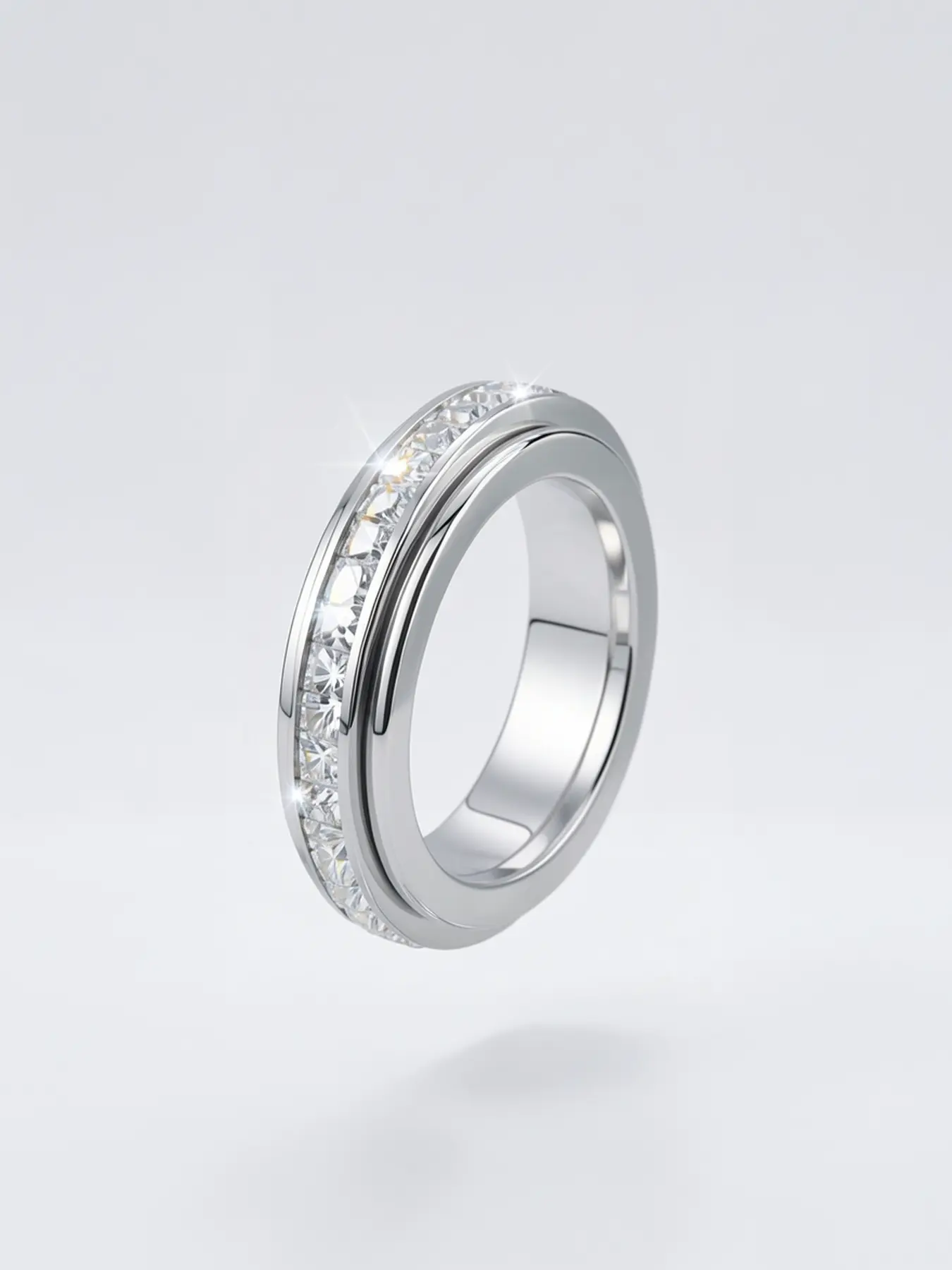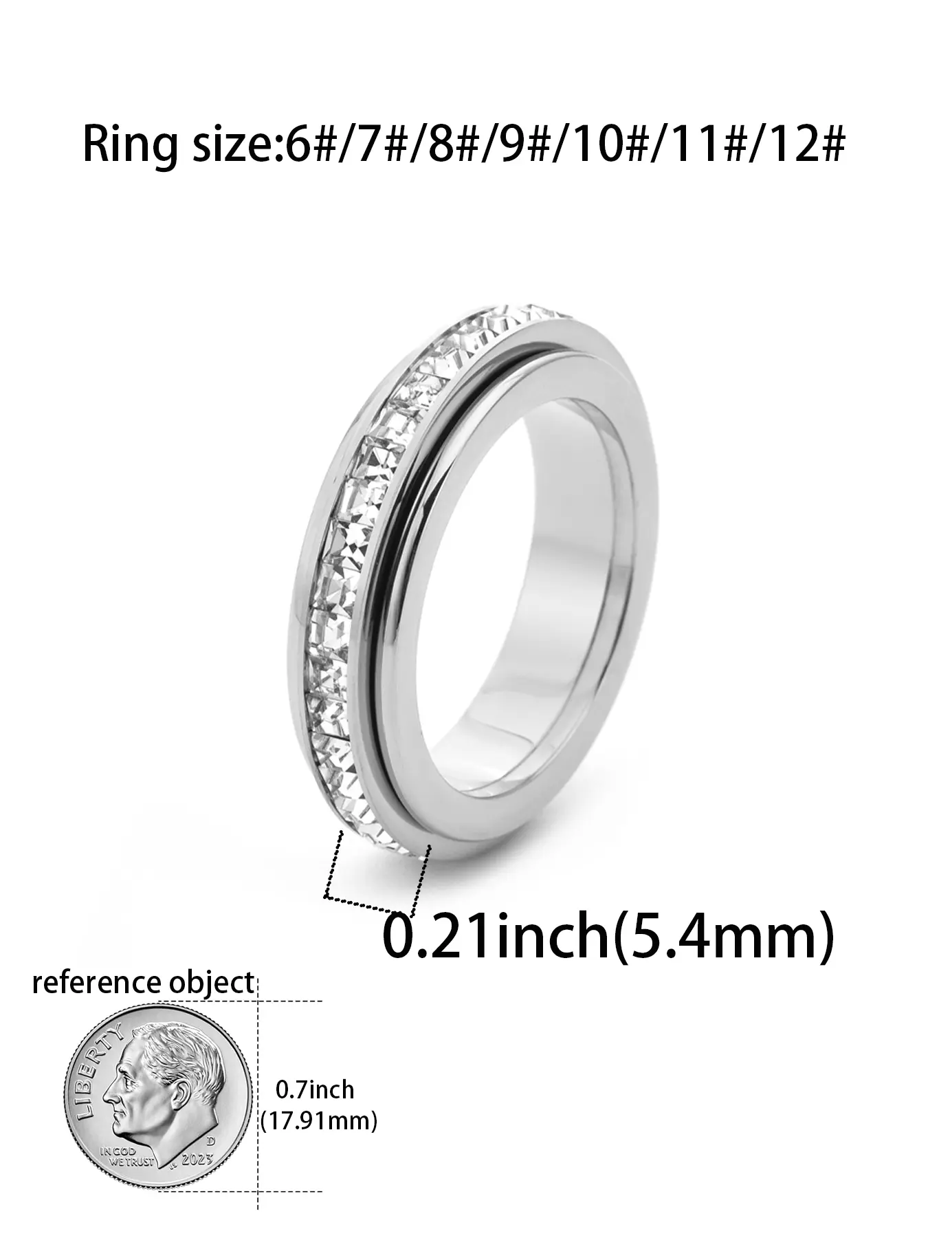 3-piece 18K anti-anxiety ring, fortune-turning rotating stress-relieving ring inlaid with zirconia to relieve anxiety # Jewelry/Stainless Steel/Fade-resistant/Allergy-proof/Couples/Festivals/Parties/Ideal Gift