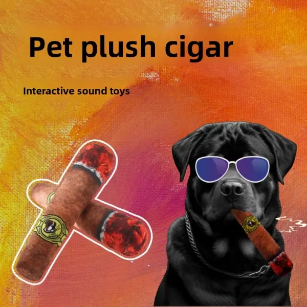 Pet Supplies Plush Cigar-Shaped Cat Teaser Stick Toy with Sound, for Corgis & Pugs, Teeth Cleaning, Durable Chew Resistance
