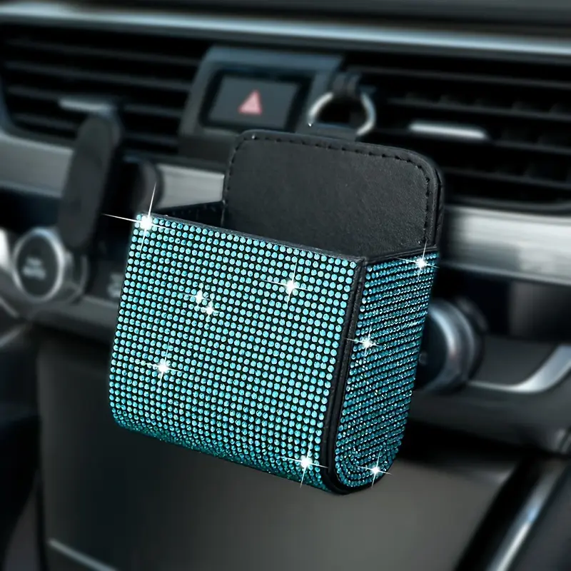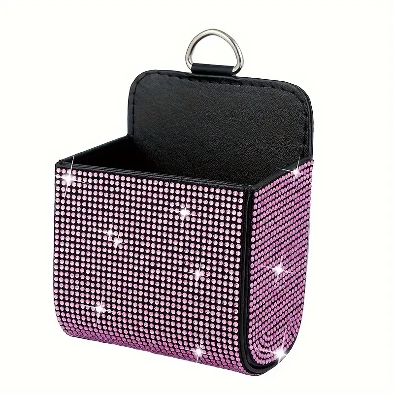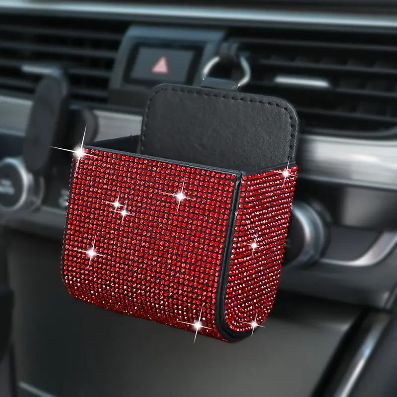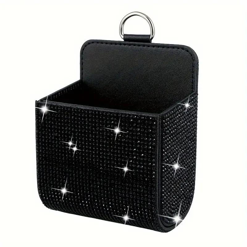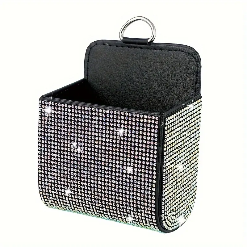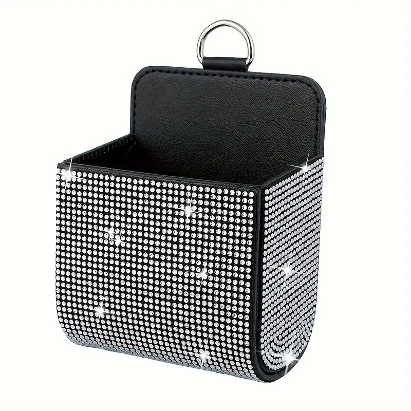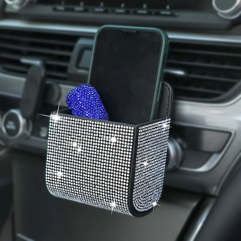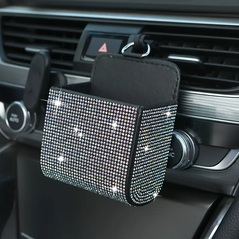 Sparkling Rhinestone Car Storage Box: 1pc, with Shiny Lid & Drawer, Glitter Organizer – for Dashboard, Console, or Door, Fit for Phones, Licenses, Keys, Vehicle Interior Accessory – Suitable for Most