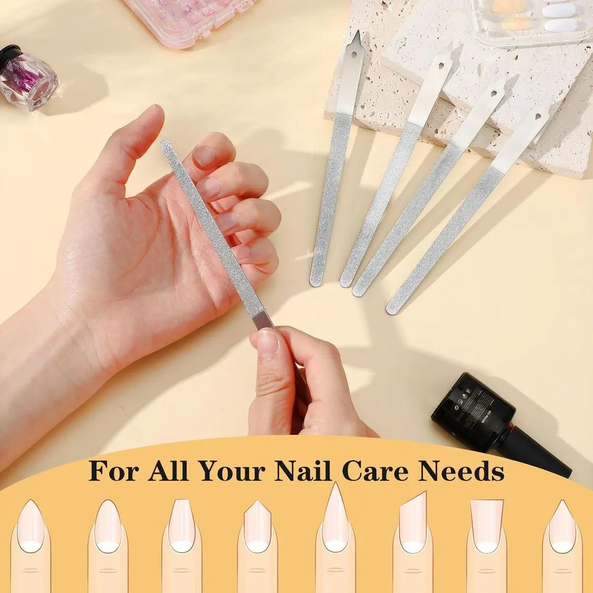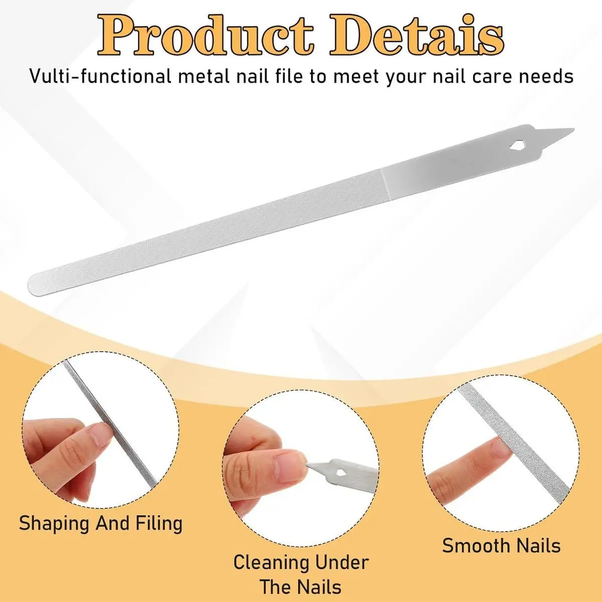 【Ergonomic Design】Our metal nail files are carefully researched and designed, and the shape is easy to hold and operate without causing hand fatigue. The tip of the nail file has a small hole, which is very convenient for hanging. At the same time, the tip has a reserved hole to provide nail cleaning function while reducing the probability of accidental injury by the tip.