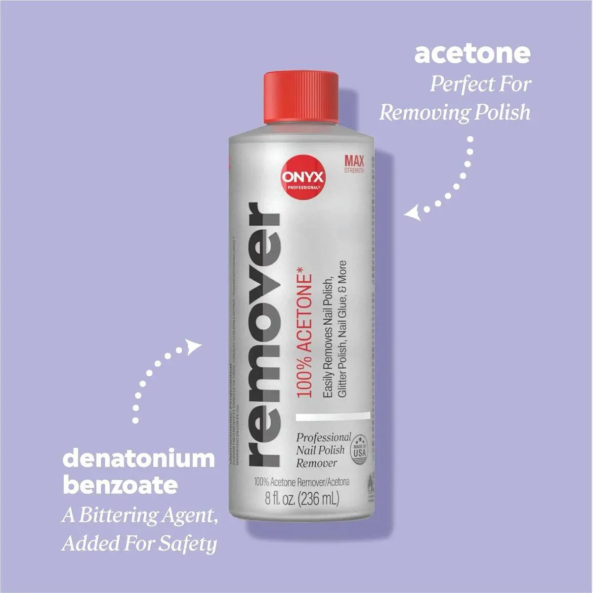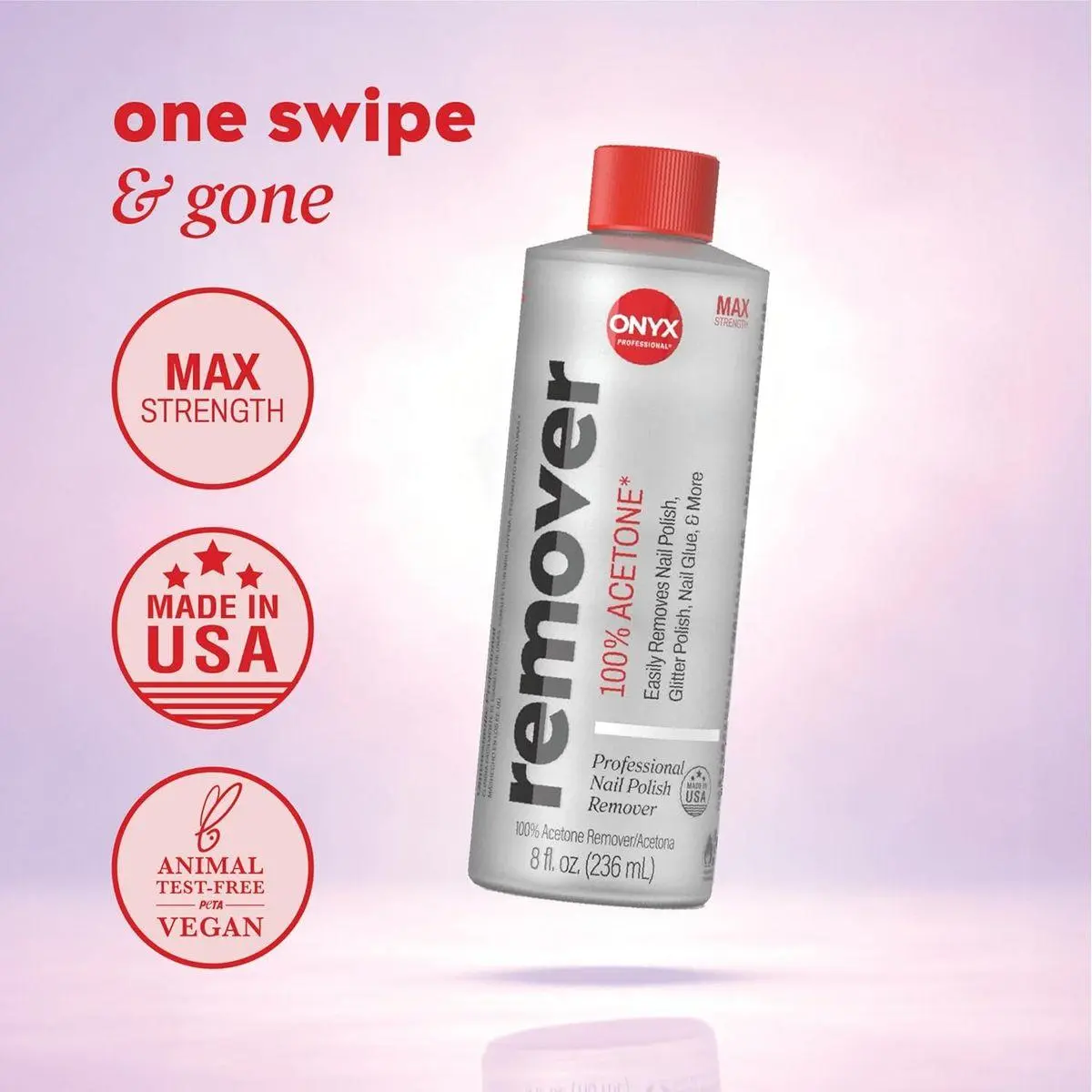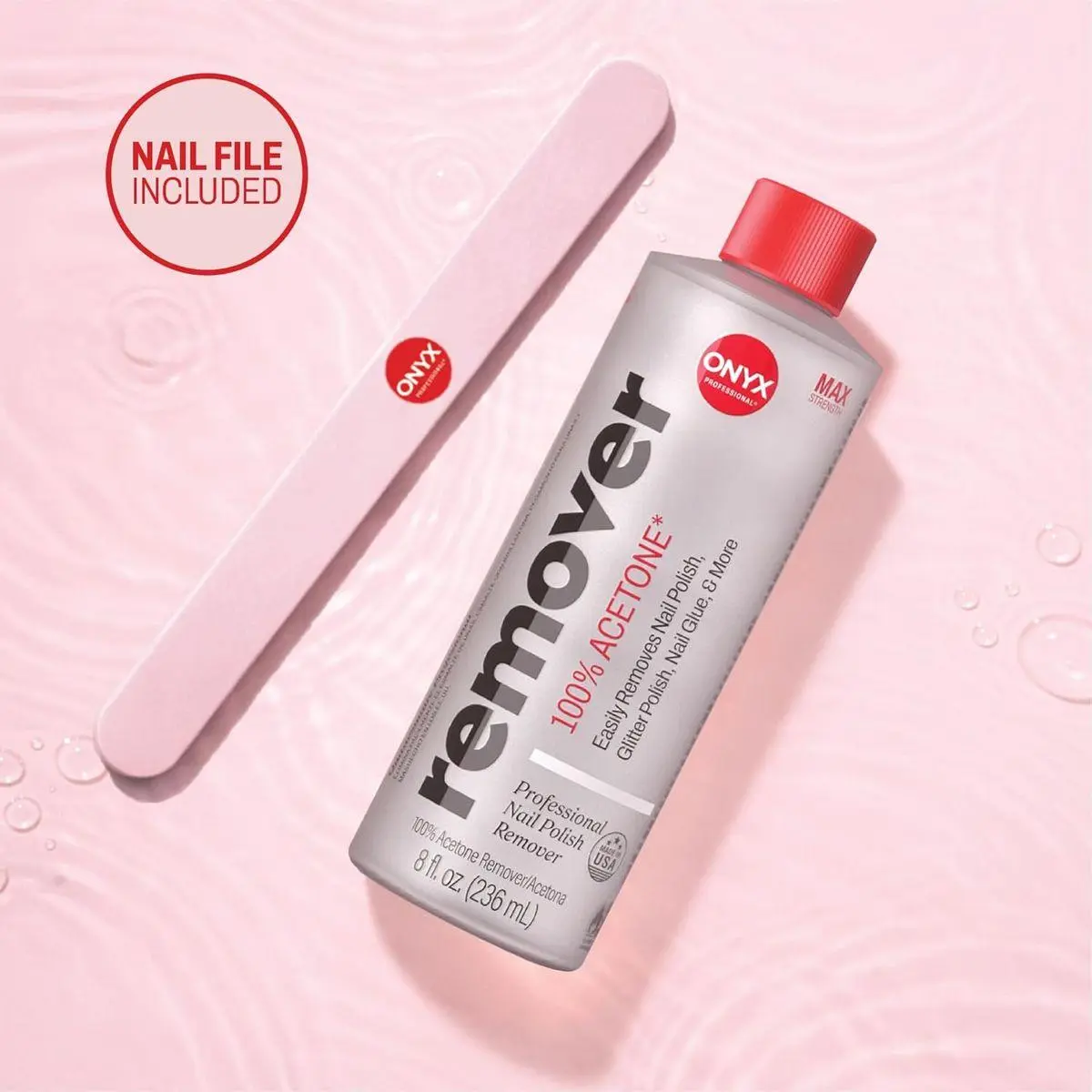 100% Acetone Gel Polish Remover & Nail File: Onyx Professional's pure acetone nail polish remover effortlessly removes a variety of nail polish, leaving your nails looking clean and polished, while the nail file shapes your nails the way you desire