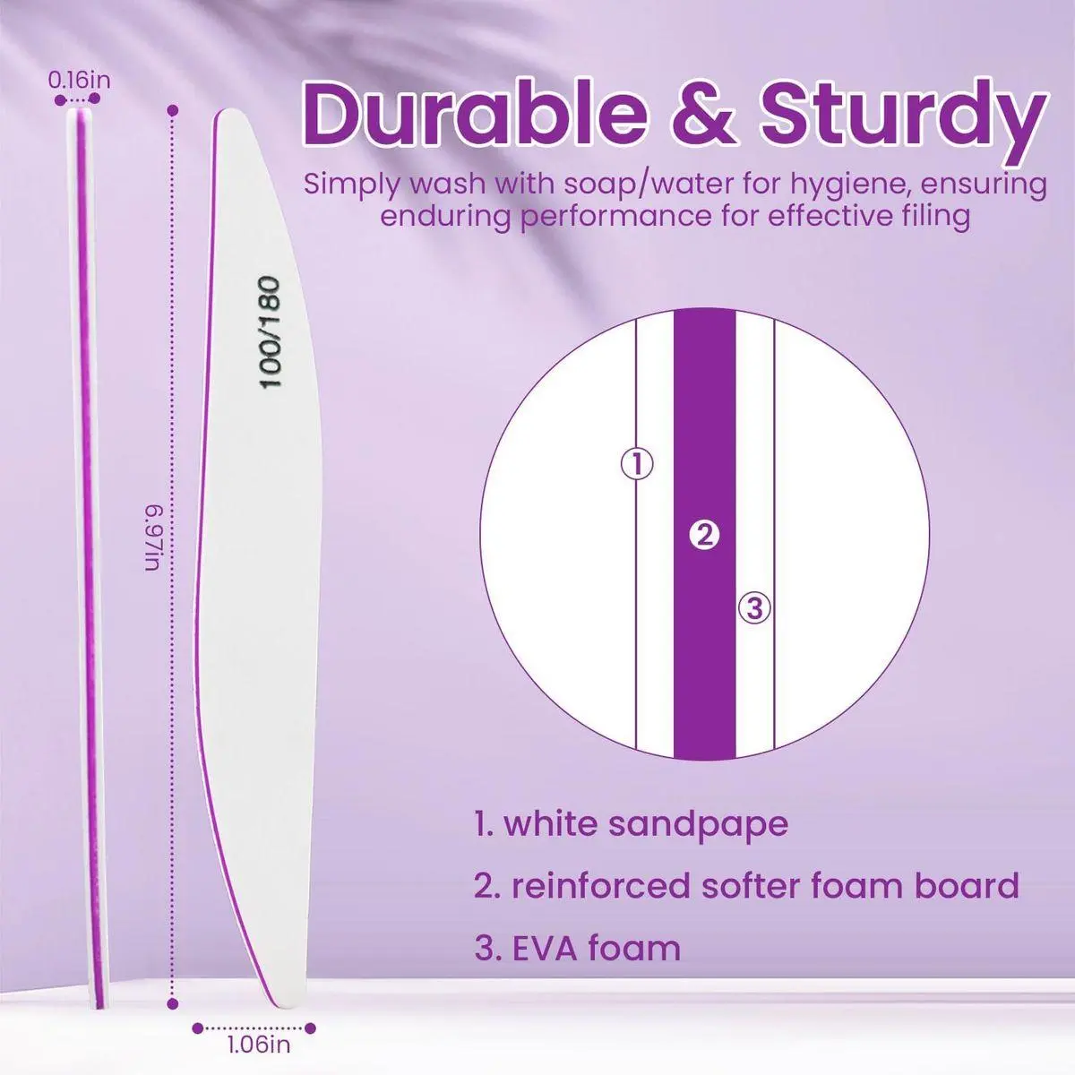 Durable & Washable Construction: Crafted from premium EVA foam, reinforced softer foam board, and white sandpaper, our sturdy yet gentle emery boards resist bending and last through repeated use. Simply wash with soap/water for hygiene, ensuring enduring performance for effective filing