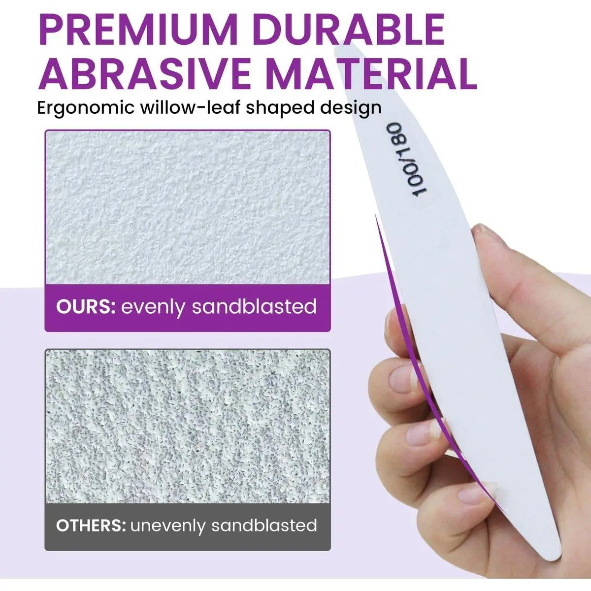 Versatile Dual-Grit Emery Boards: These willow-leaf shaped nail files feature 100/180 grit sides for all filing needs. Aggressive 100 grit tackles thick acrylics, gels, and stubborn toenails; while the 180 grit smoothes edges and creates a refined finish for salon-quality shaping on natural or artificial nails