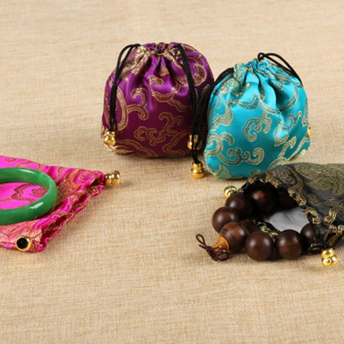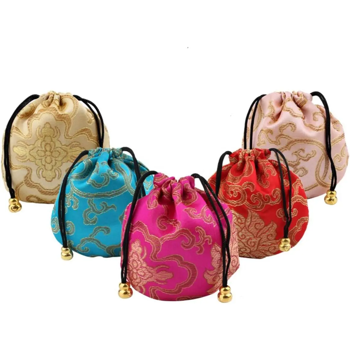 16 pcs Silk Brocade Jewelry Pouch Bag, Drawstring Coin Purse Gift Bag