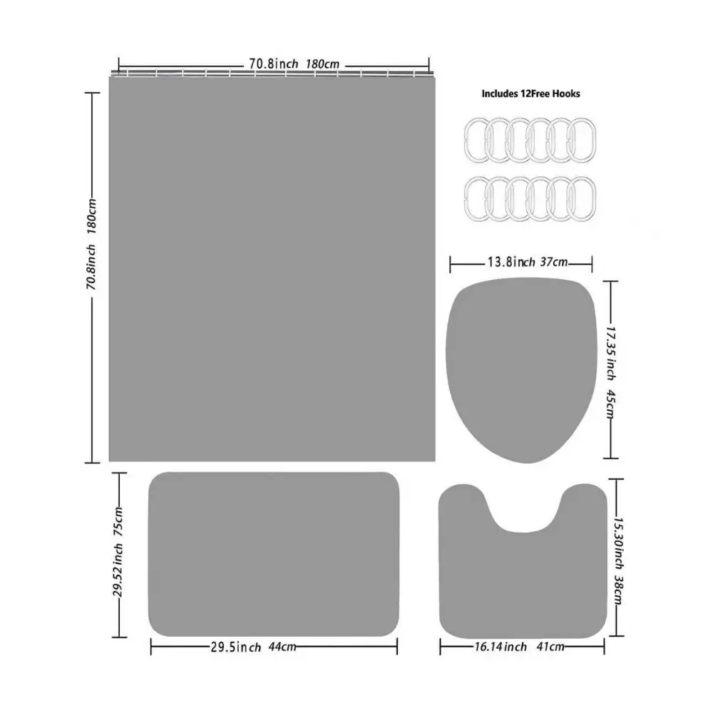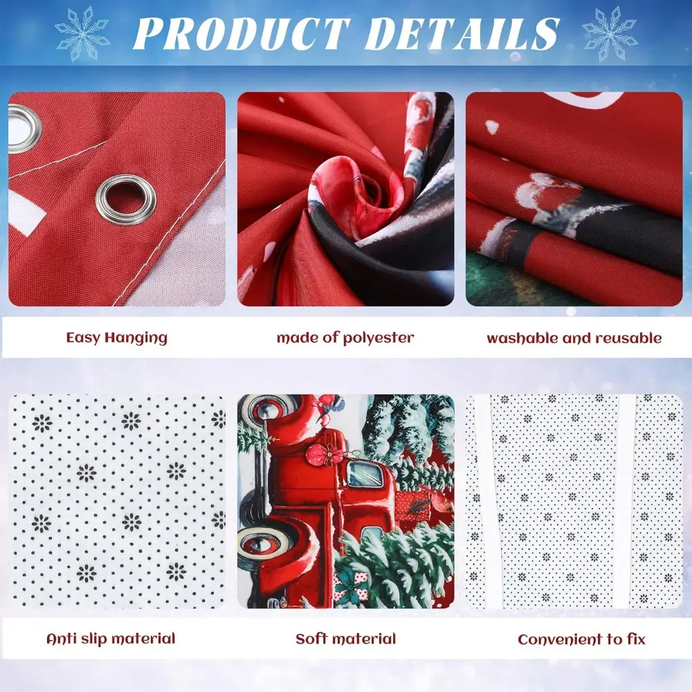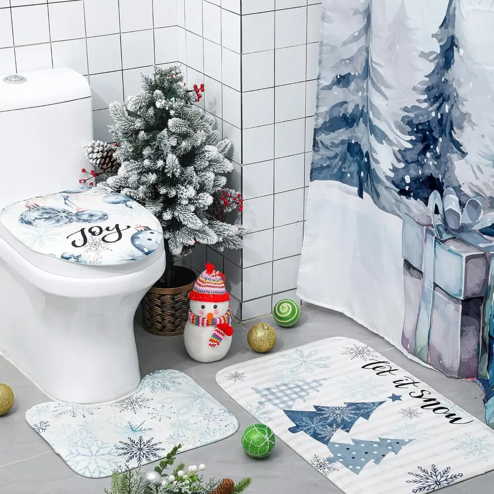 4 Pcs Christmas Shower Curtains Set with Non Slip Rug Winter Christmas Bathroom Decor Toilet Lid Cover and Bath Mat Snowman Shower Curtain with 12 Hooks for Xmas Bathroom Decor