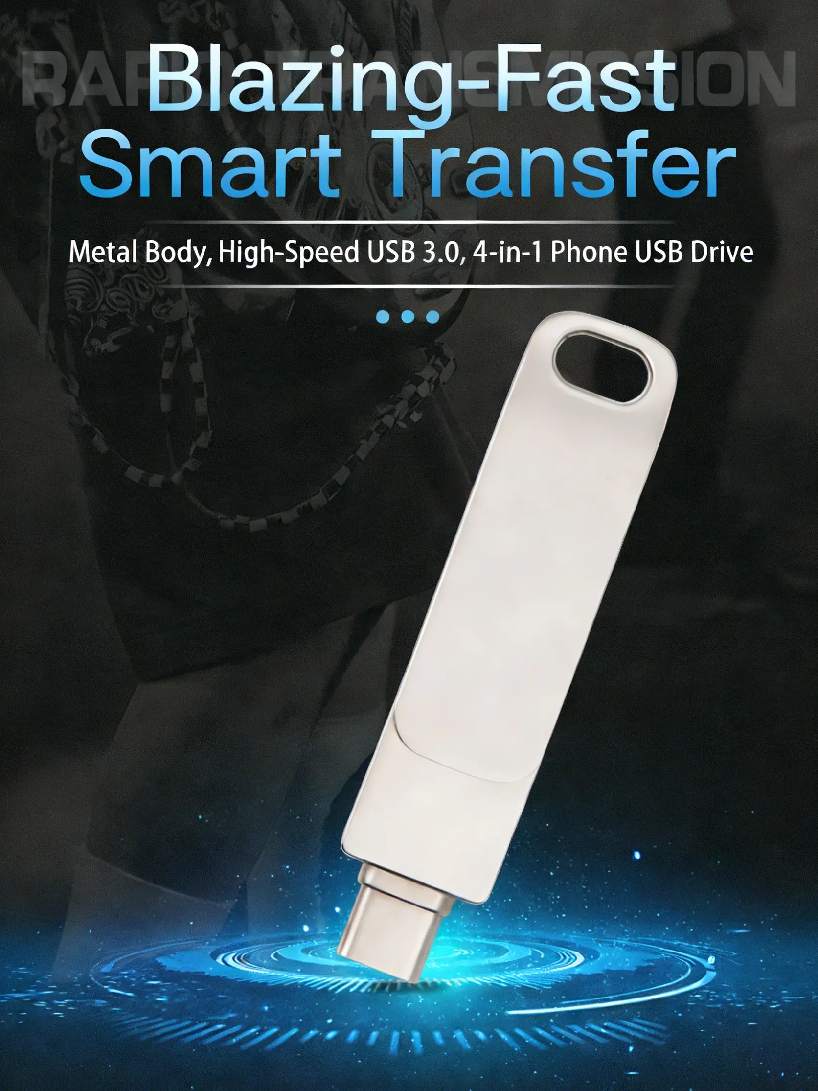 Crafted with premium aluminum alloy and advanced chip technology, this USB flash drive is engineered exclusively for iPhones, Android phones, iPads and computers, delivering exceptional performance. Its unique cross-shaped design with a glowing center enhances portability and doubles as a sleek, eye-catching accessory. The protective cover defends the connector from damage when not in use and minimizes the risk of loss.Note: iPhone users need to scan the QR code on the packaging in advance to download the required app; Android users only need to enable the OTG function for instant use