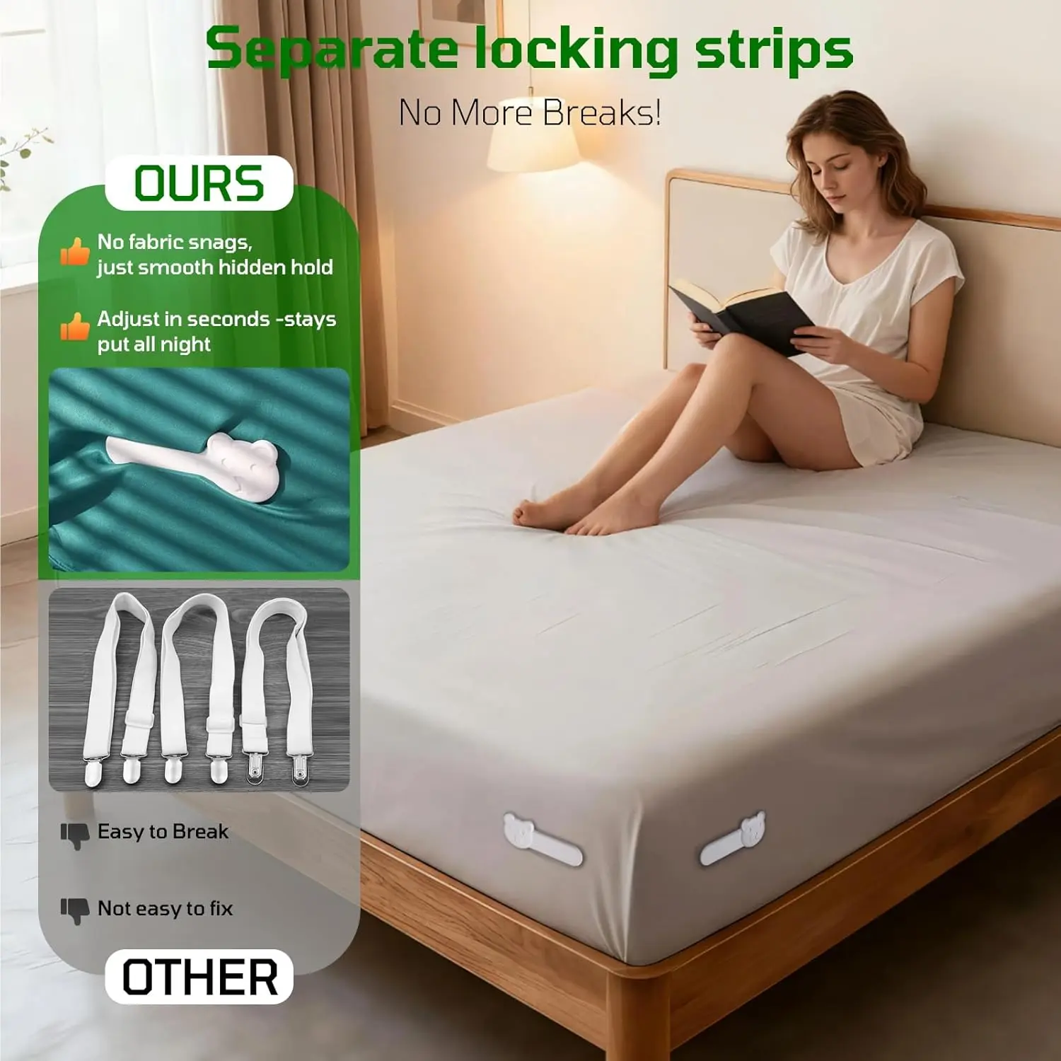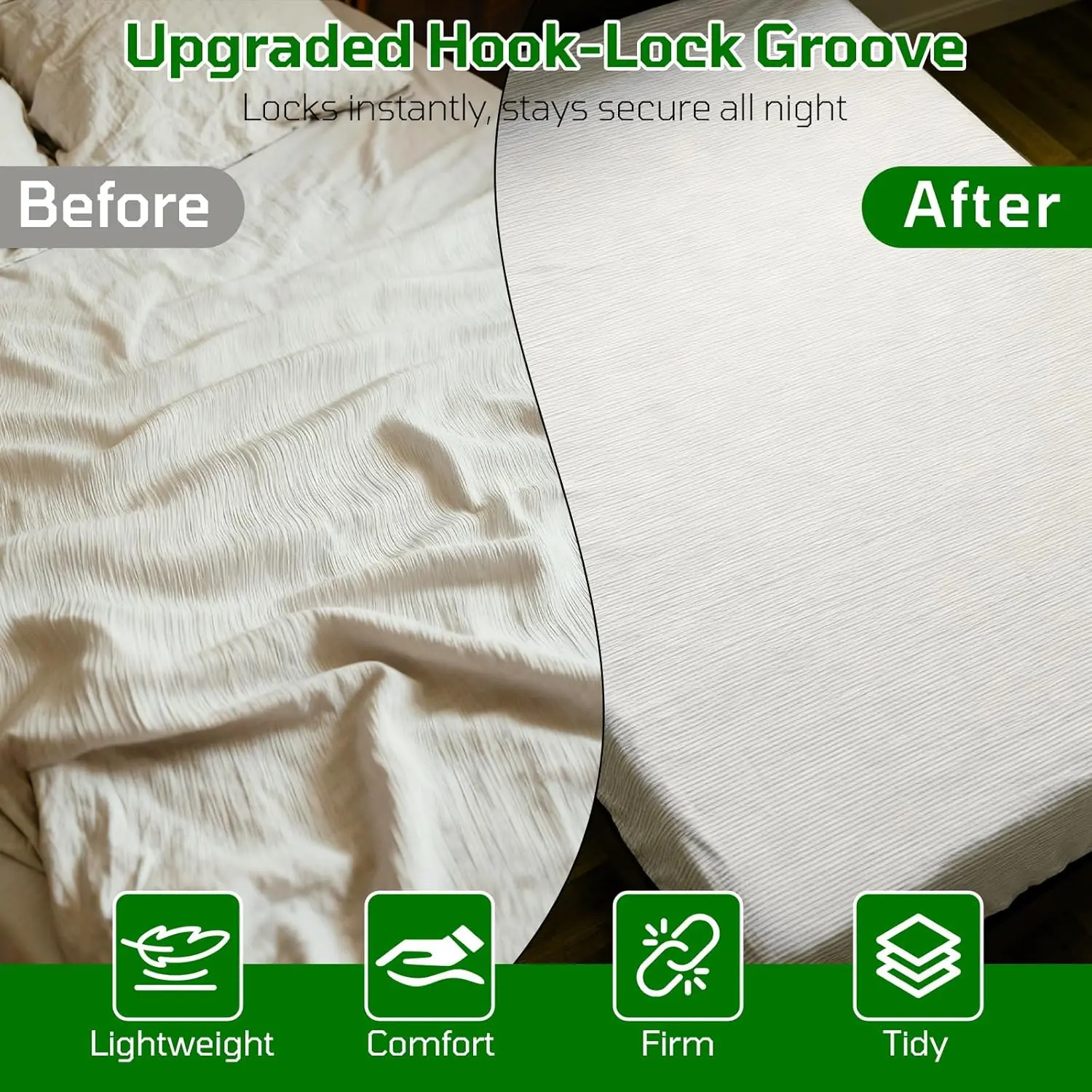 Strong Anti-Slip, Secure Fit: The sheet holder features snap-on buckles and anti-slip design to firmly secure all four corners of the sheet to the mattress edges. This prevents shifting and wrinkling during sleep, keeping the bed surface smooth and tidy.