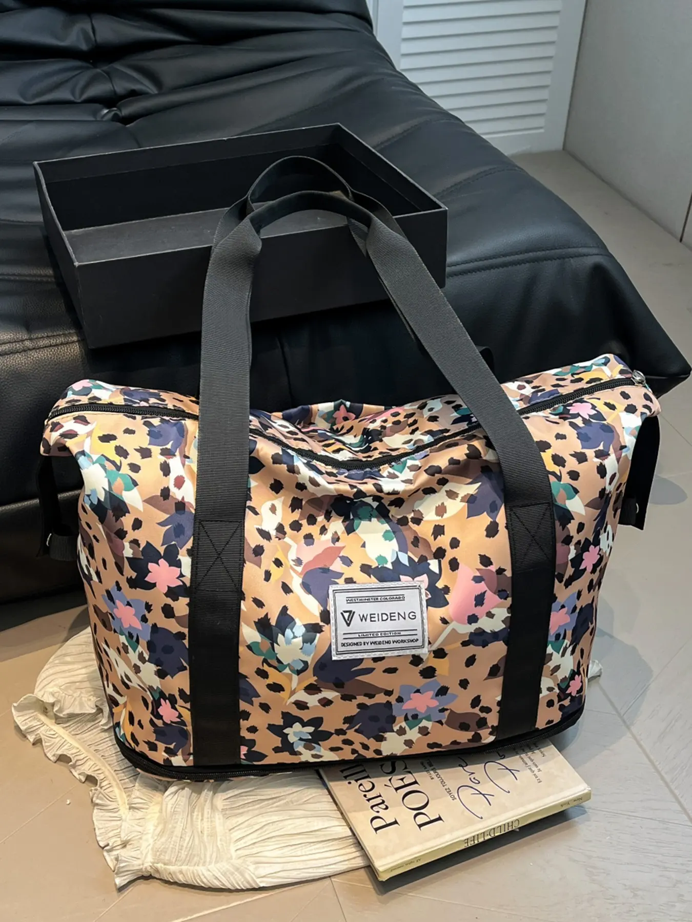 1pc Simple floral versatile travel bag with new plant print design, large capacity layered storage, hand-held crossbody, fitness travel, commuting, business travel, lightweight travel bag