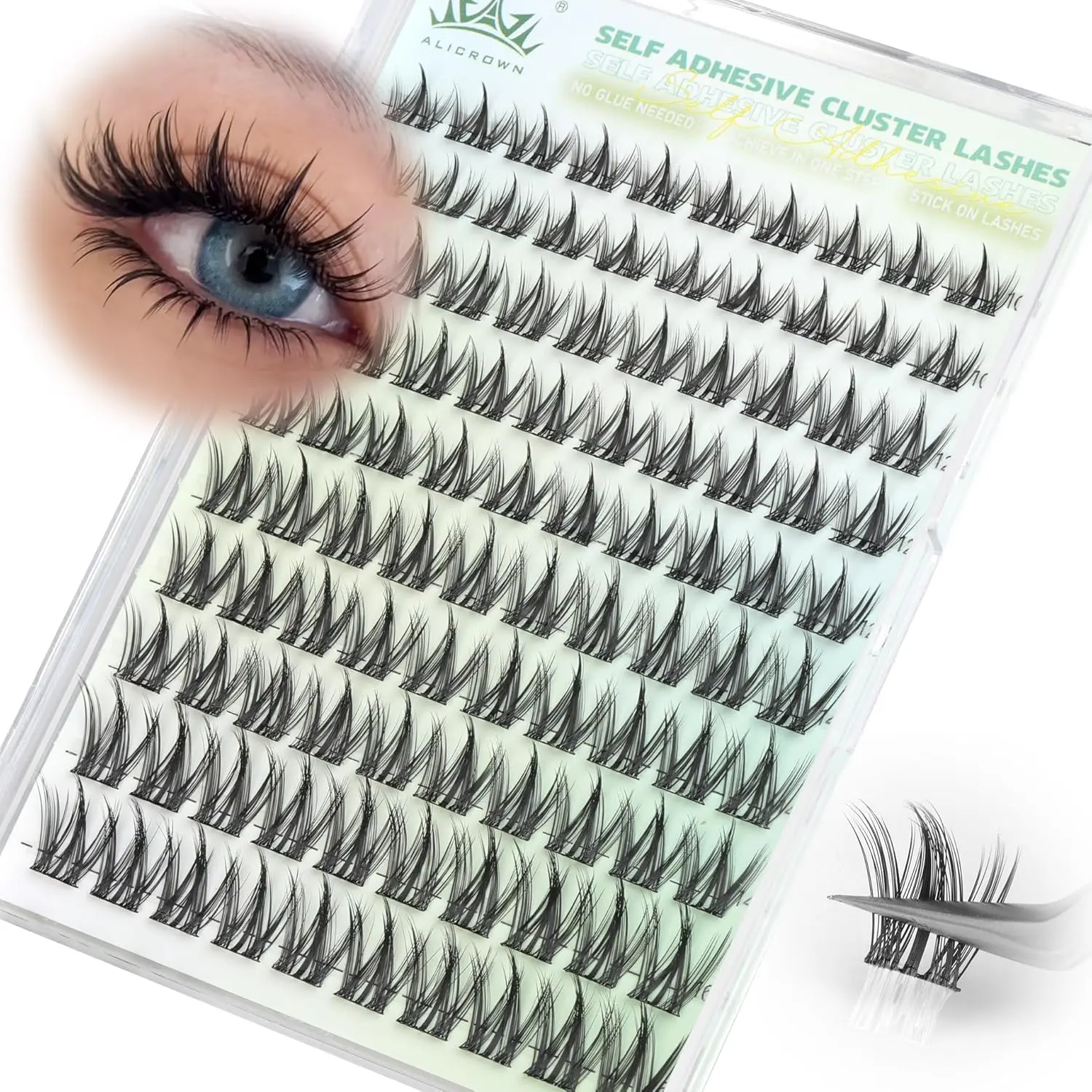 ·Beginner-Friendly Press-On Lash Clusters - No skills needed! These no glue needed eyelashes adhere instantly—just press them under your natural lashes for a lifted, wide-eyed effect. The pre-glued lashes clusters simplify application, making DIY lash extensions as easy as 1-2-3. Perfect for first-timers or busy mornings.