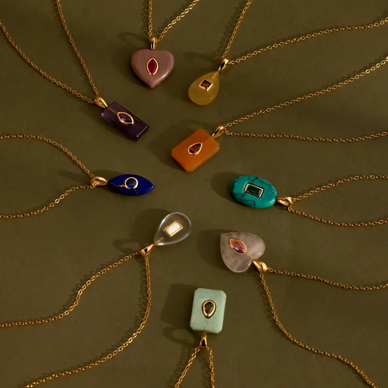 Experience crystallized glamour with our Birthstone Crystal Necklace, where a bezel set birthstone accents a polished crystal base. The blend of organic stone and luminous gold creates a refined yet meaningful piece that pairs runway-ready minimalism with symbolic charm.