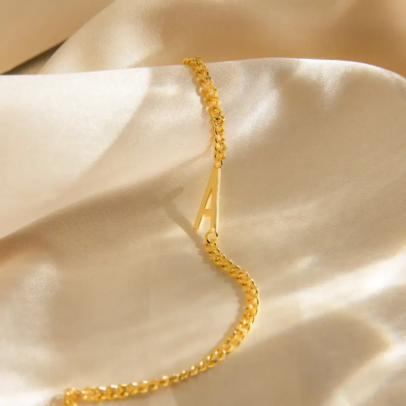 Our Large Letter Bracelet created in a minimal and elegant block font and can be personalized with any letter of your choosing. Handmade with a sturdy curb chain and a statement letter charm, this bracelet makes for the perfect everyday jewelry piece.