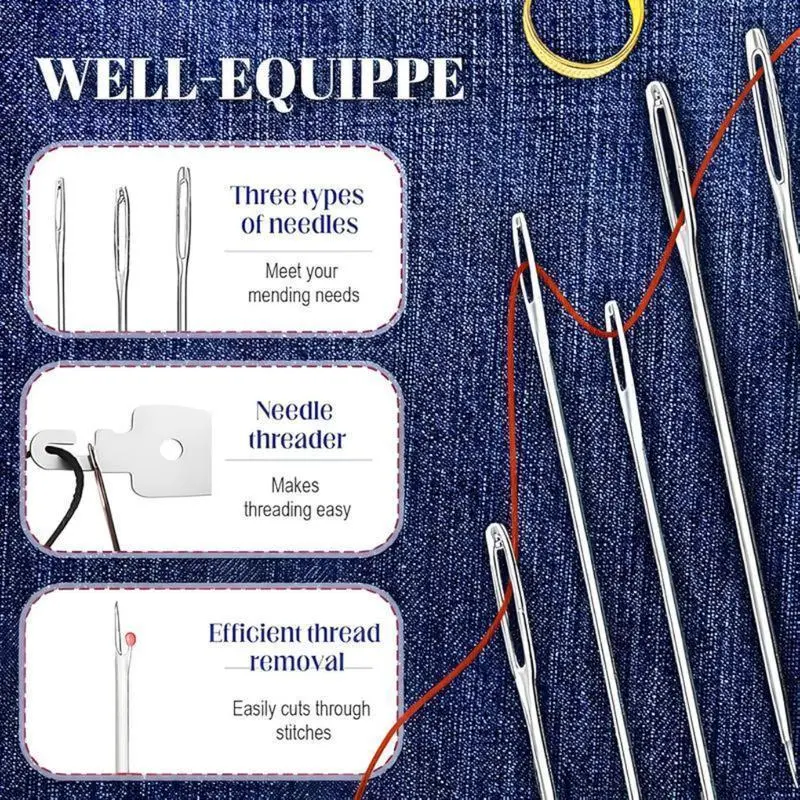 34 PCS Steel Needles Set - Long & Thin Handmade Quilting & Sewing Needles Big Eye Kit for DIY Embroidery Mending Sewing Projects