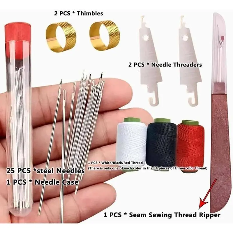 34Pcs Embroidery Sewing Needle Kit Comprehensive Sewing Needle Kit This 34-piece kit includes steel needles in 10+ sizes, from ultra-fine (15mm) for silk to extra-long (80mm) for heavy quilts. ?? Fabric-Specific Design Complete Thread & Tool Set Perfect For Why Choose This Kit? Start Sewing Without Limits Whether mending a favorite blouse or crafting a quilt from scratch, this kit provides everything you need for flawless results. ????