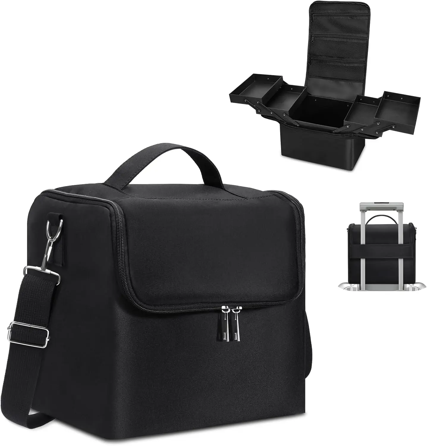 ·Large Makeup Carrying Train Case for Women,Black Travel Makeup Organizer Bag Storage Box,4 Tier Professional Nail Organizer Case with Adjustable Dividers for Nail Tools Jewelry MakeUp Brushes Toiletry