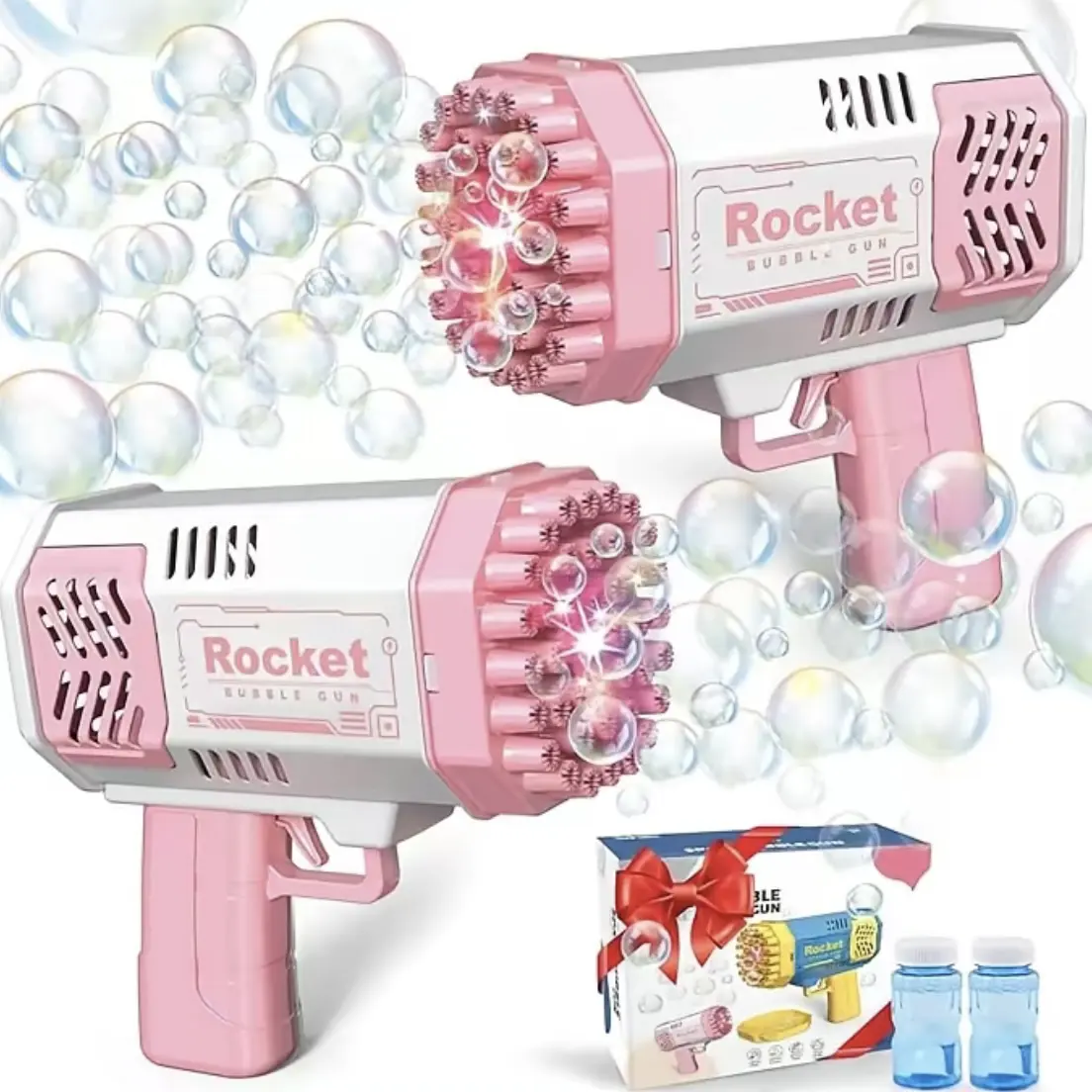 40-Hole Light-Up Bubble Gun with Bubble Solution, Fun Outdoor Indoor Bubble Toy for Kids, Perfect for Birthday Parties & Summer Play