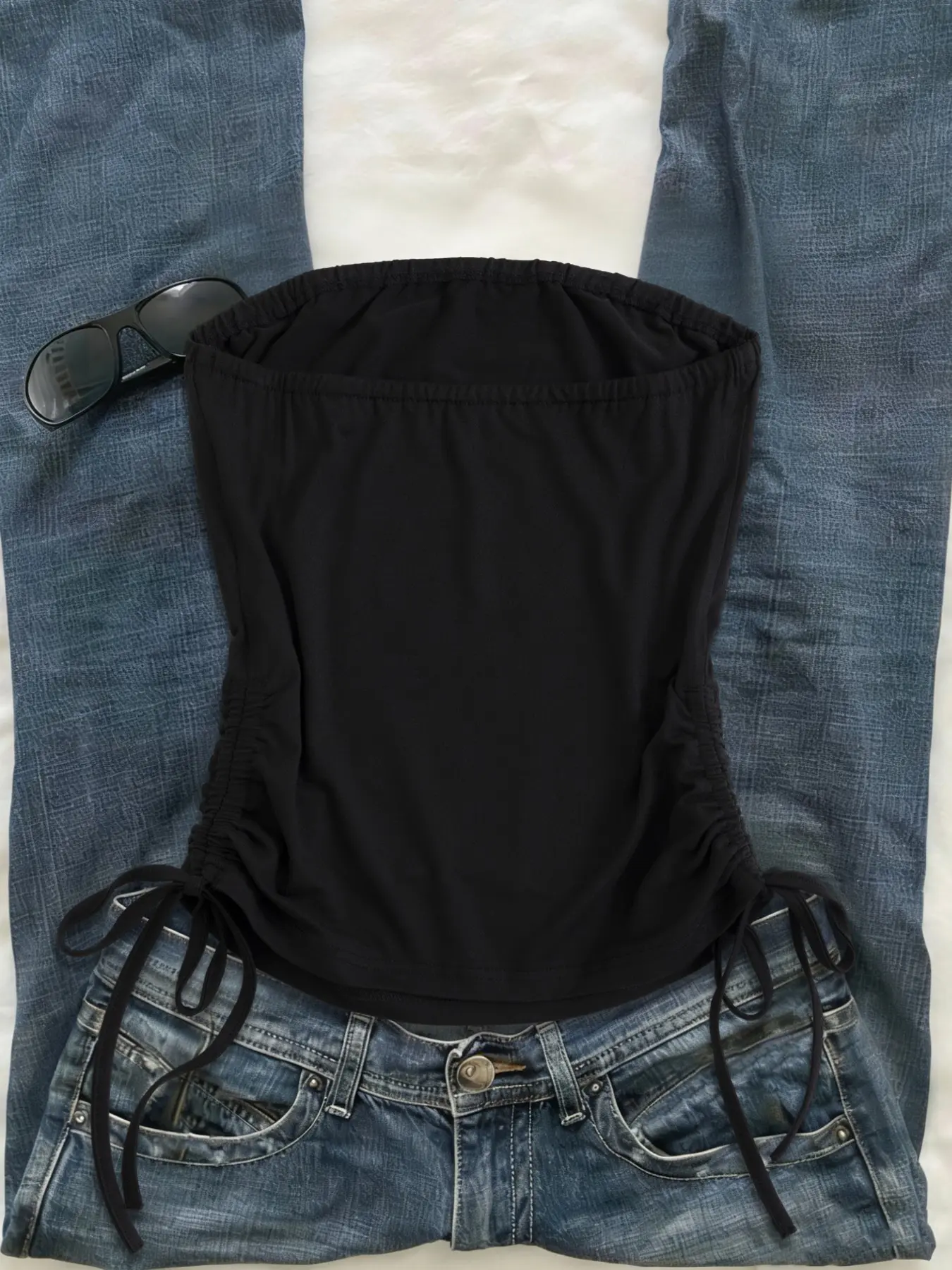Y2K Style Drawstring Tube Top, Sleeveless Slim-Fit Crop Top, Summer Streetwear, Trendy Fashion, Perfect for Daily Wear & Layering