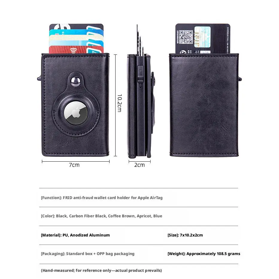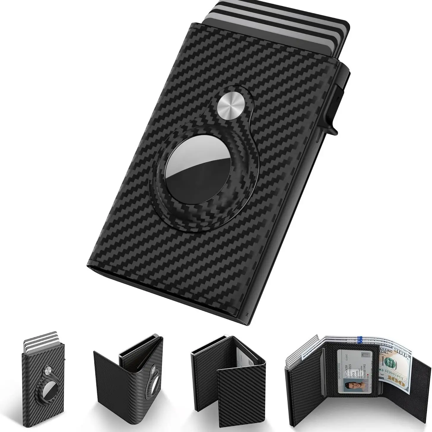 Mens Smart Wallet Card Holder for AirTag: Leather, RFID Blocking, Slim, Carbon Fiber, Minimalist - 6-9 Card Capacity| ID Window| Cash Slot