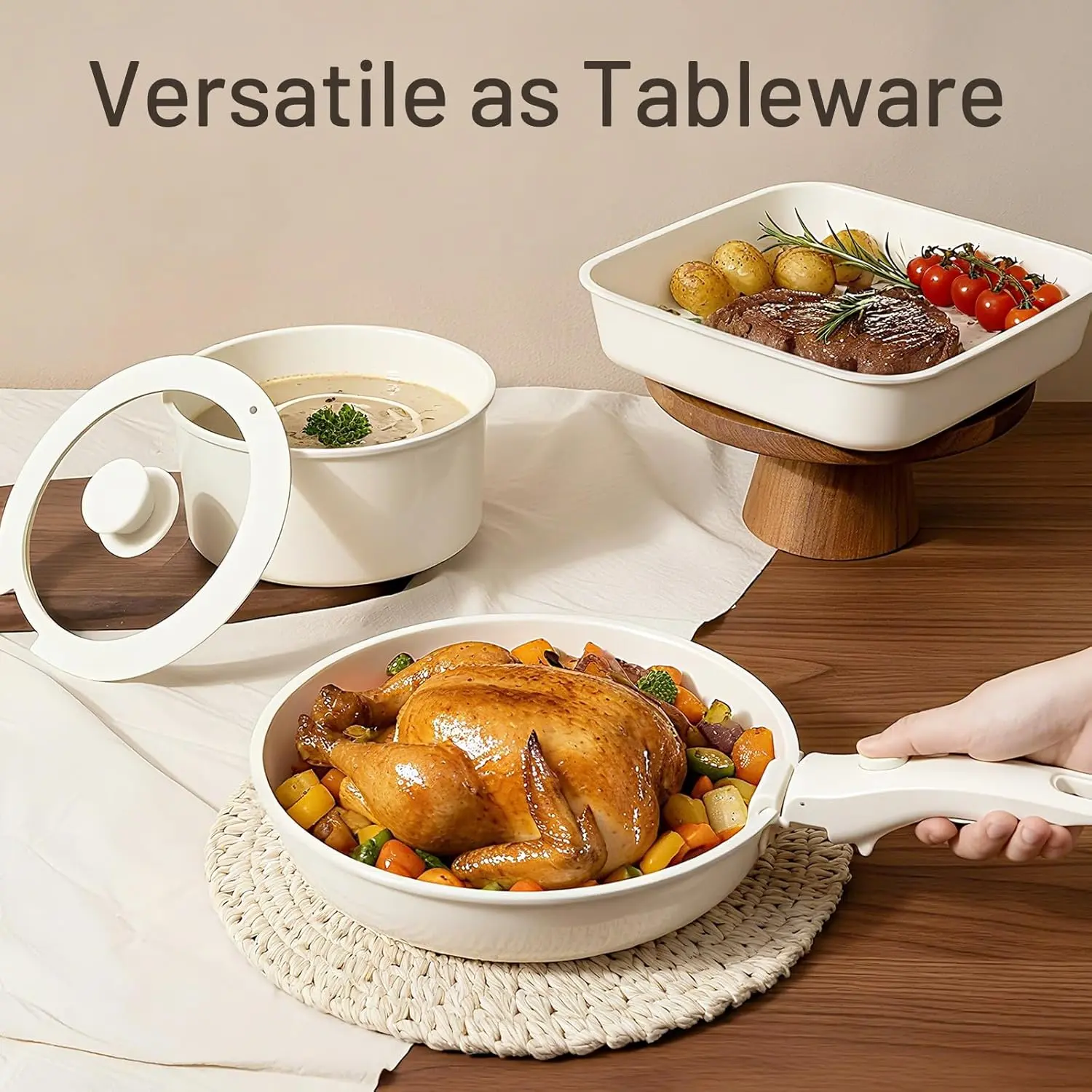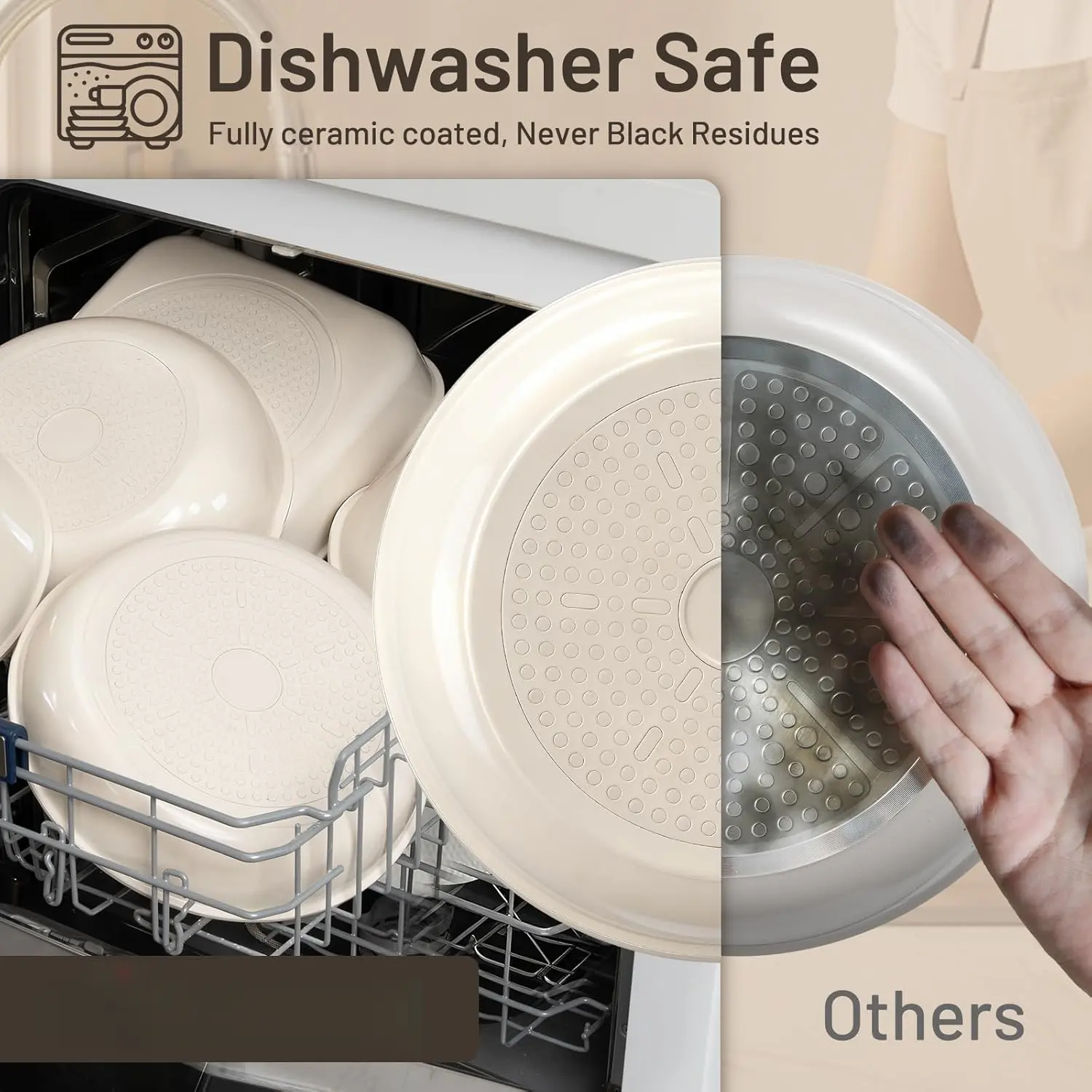Nonstick Pots and Pans Set - Ceramic Cookware Set with Detachable Handle - 25 Pack Healthy Pans Set for Cooking - Stackable for RV Kitchen, Induction Ready - Dishwasher and Oven Safe