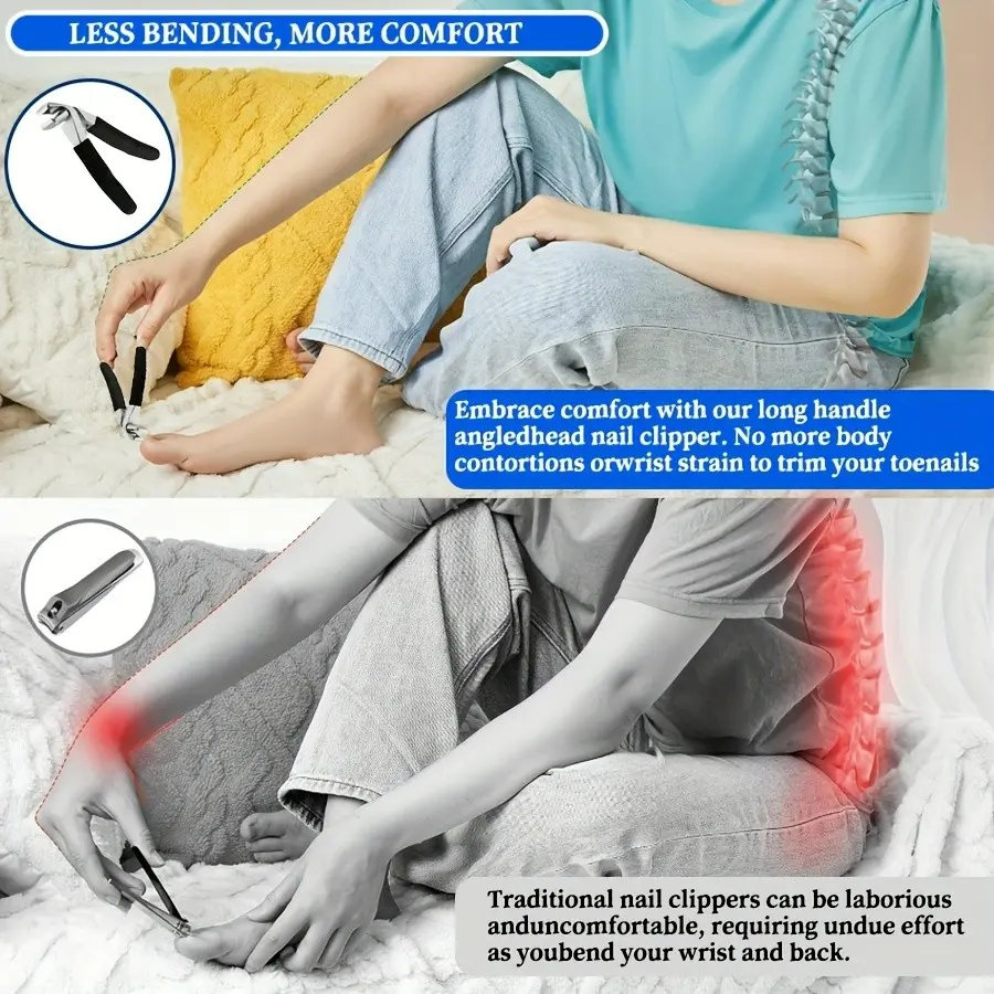 ·Heavy-Duty Wide-Jaw Toenail Clipper: Engineered with a 3Cr13 stainless steel cutting head, this wide-jaw clipper effortlessly cuts through thick, hard, fungal, and ingrown nails with minimal effort, no bending or wrist strength required, for smooth, jam-free cuts.