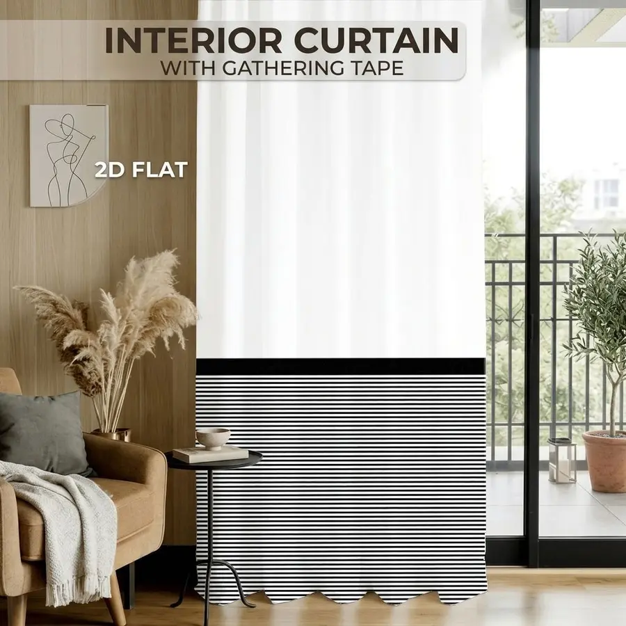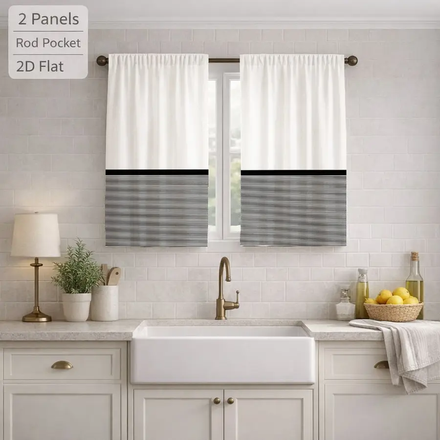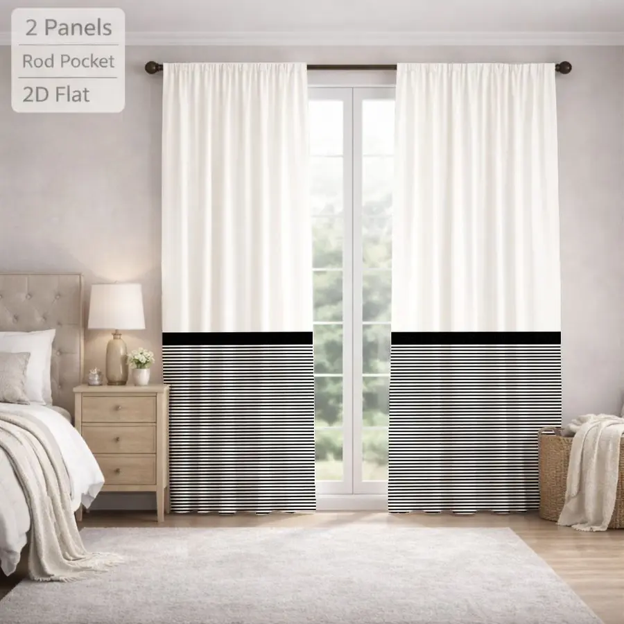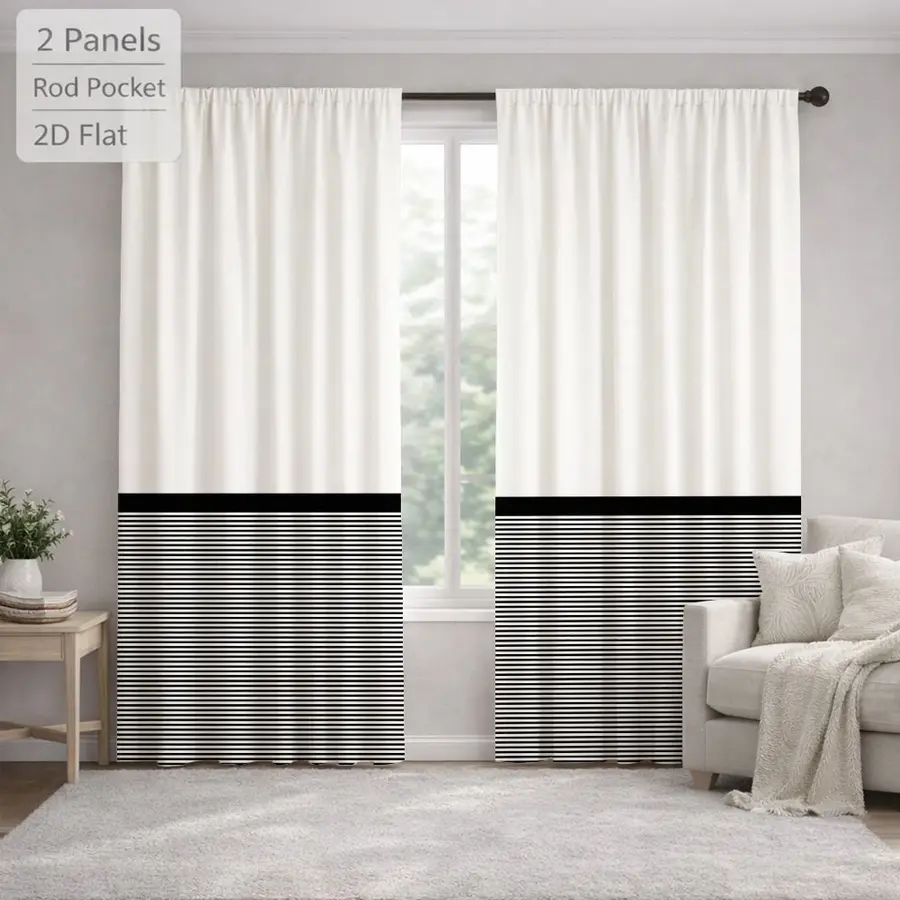 2Pcs Modern Minimalist Horizontal Stripes Black And White Sun Blocking Curtains Digital Printed Rod Pocket, Window Treatment For Bedroom Office Kitchen Living Room Study Home Decor