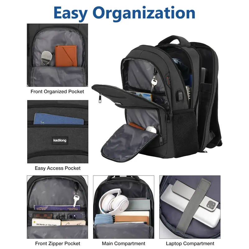 kadilong 15 Inch Large Anti-theft Laptop Backpack with USB Charging Port, Headphone Jack & Password Lock, Water Resistant Backpack for Students, Working Adults, School, Work & Travel