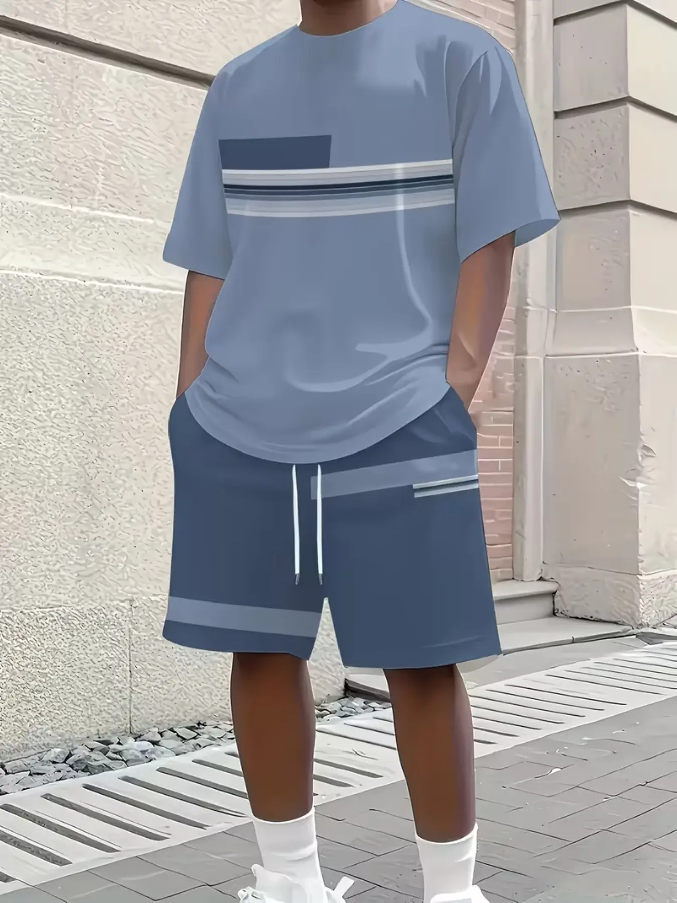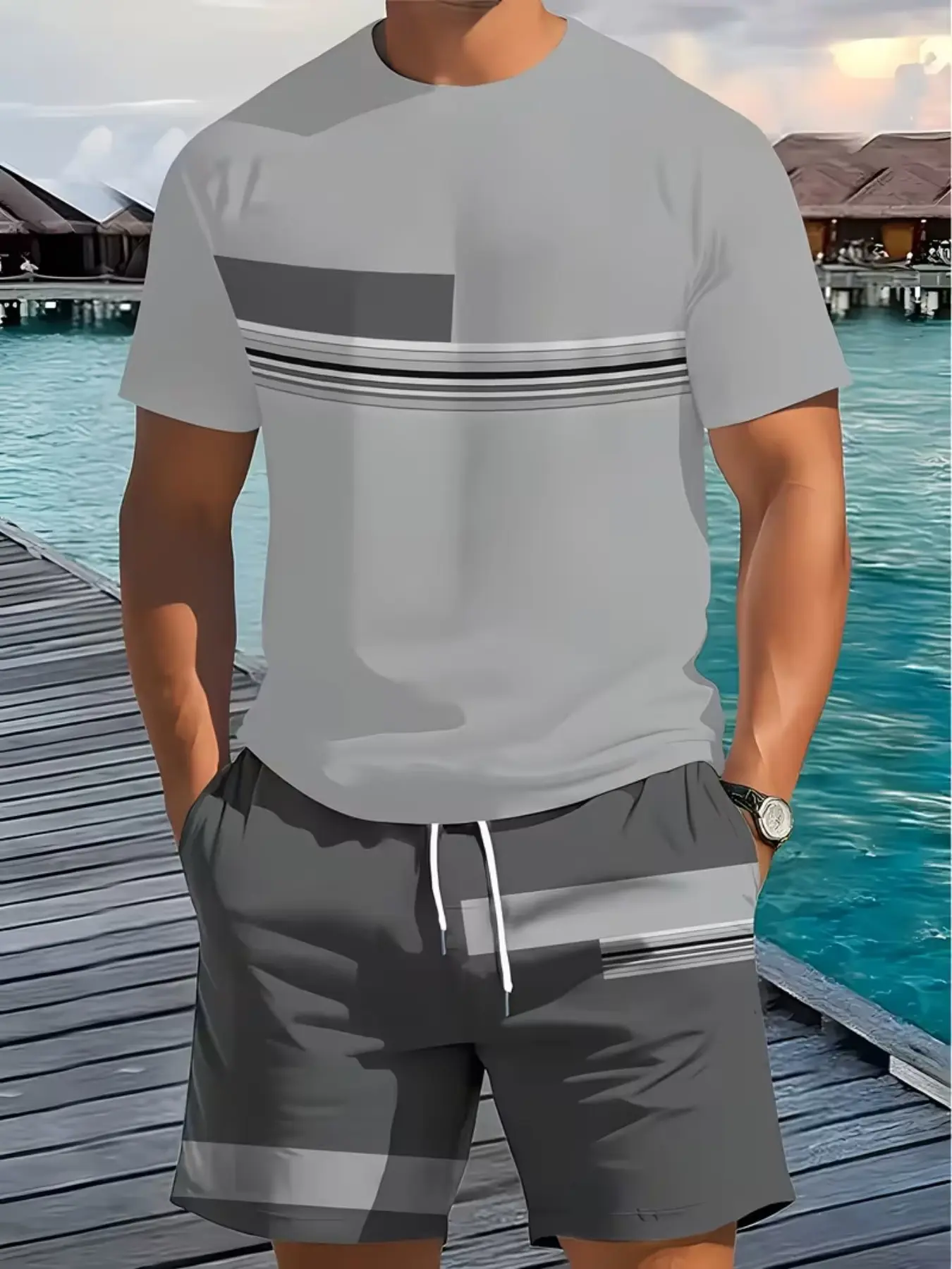 Men's Outdoor Set, Summer Fashion Short Sleeve Crew Neck Quick-Dry T-Shirt + Shorts, 3D Digital Print, Casual Fitness Wear, Gift Idea