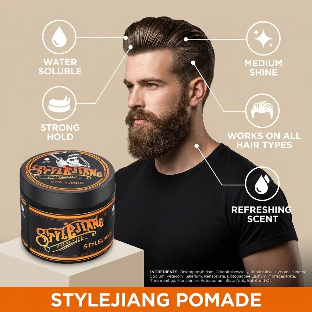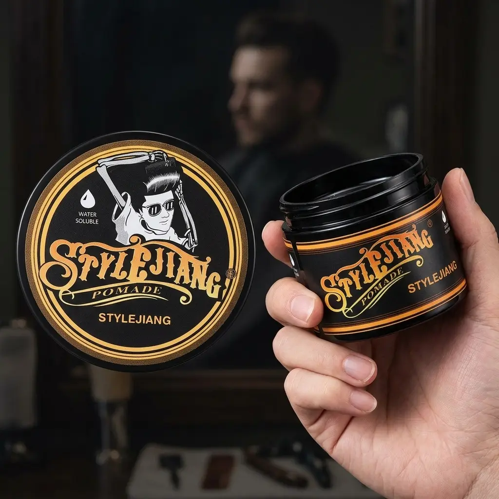 Introducing the STYLEJIANG Firm (Strong) Hold Pomade in the tempting Whiskey Bar fragrance. This premium pomade combines unbeatable hold with a distinctive whiskey scent. It keeps your hairstyle in place all day, offering confidence for any challenge. Perfect for classic or modern styles, this pomade is your versatile grooming companion.
