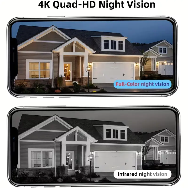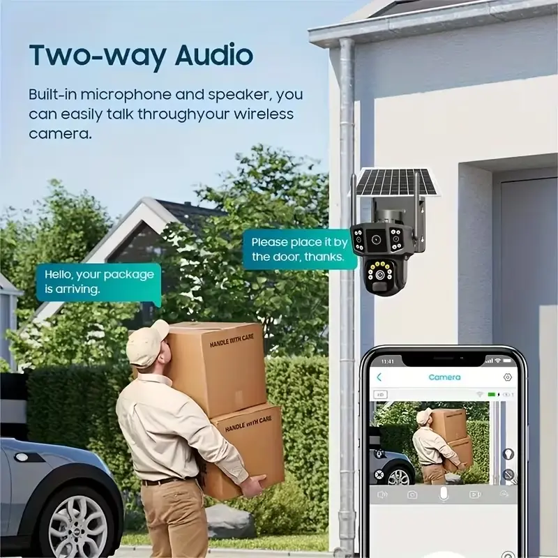 4K/8MP Solar-powered Outdoor Security Camera, 2.4GHz Wi-Fi, Pan/tilt, Dual Lenses, PIR Human Detection, Color Night Vision, Two-way Audio, Home Solar-powered Security Camera | Wireless Outdoor 355° Panoramic View, IP66