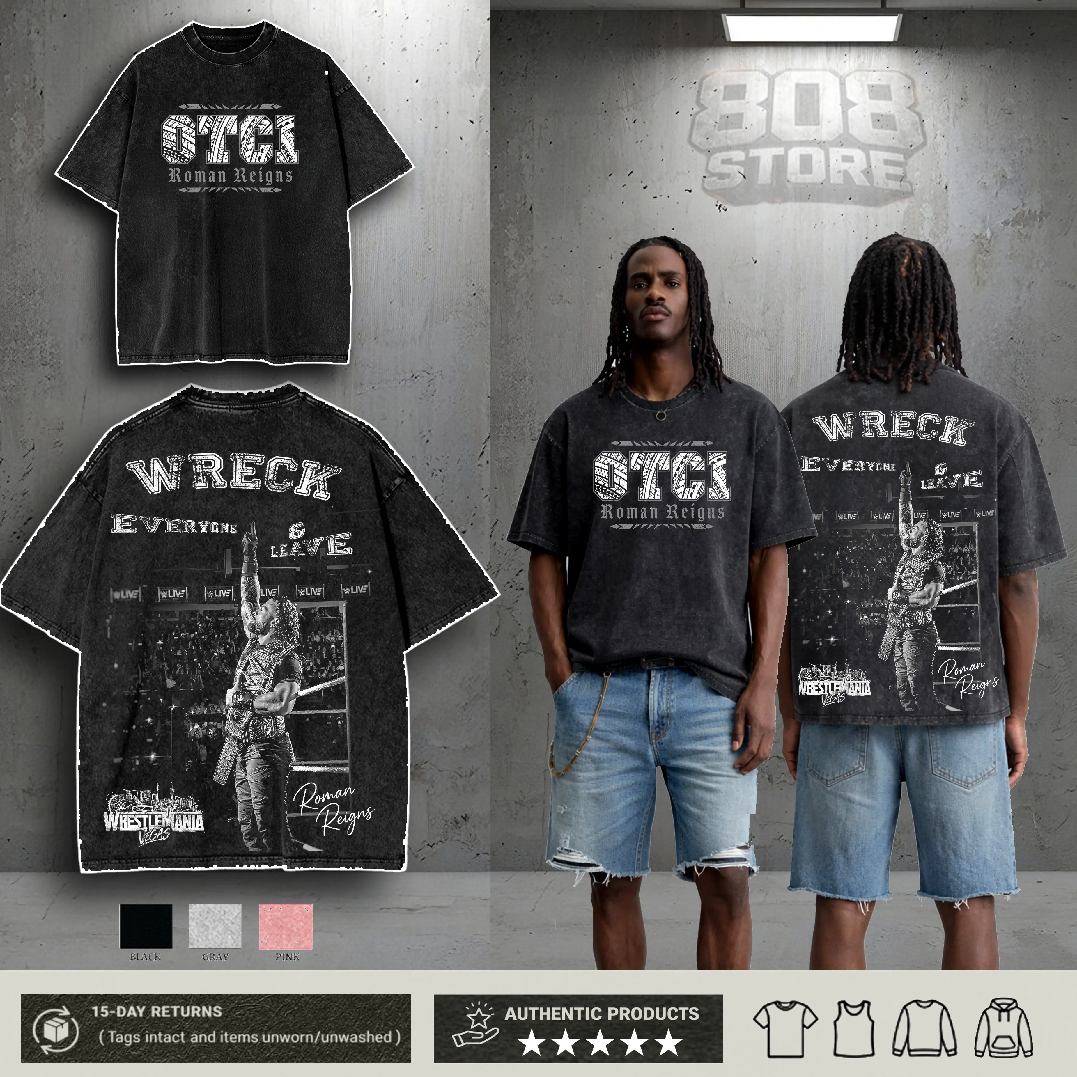 ROMAN REIGNS - WRESTLEMANIA VEGAS WASHED TEE, Wrestling Graphic Tee, Wrestler Shirt, Sports Shirt, Vintage Wresting Shirt, Wrestling Gift tshirts Menswear Top