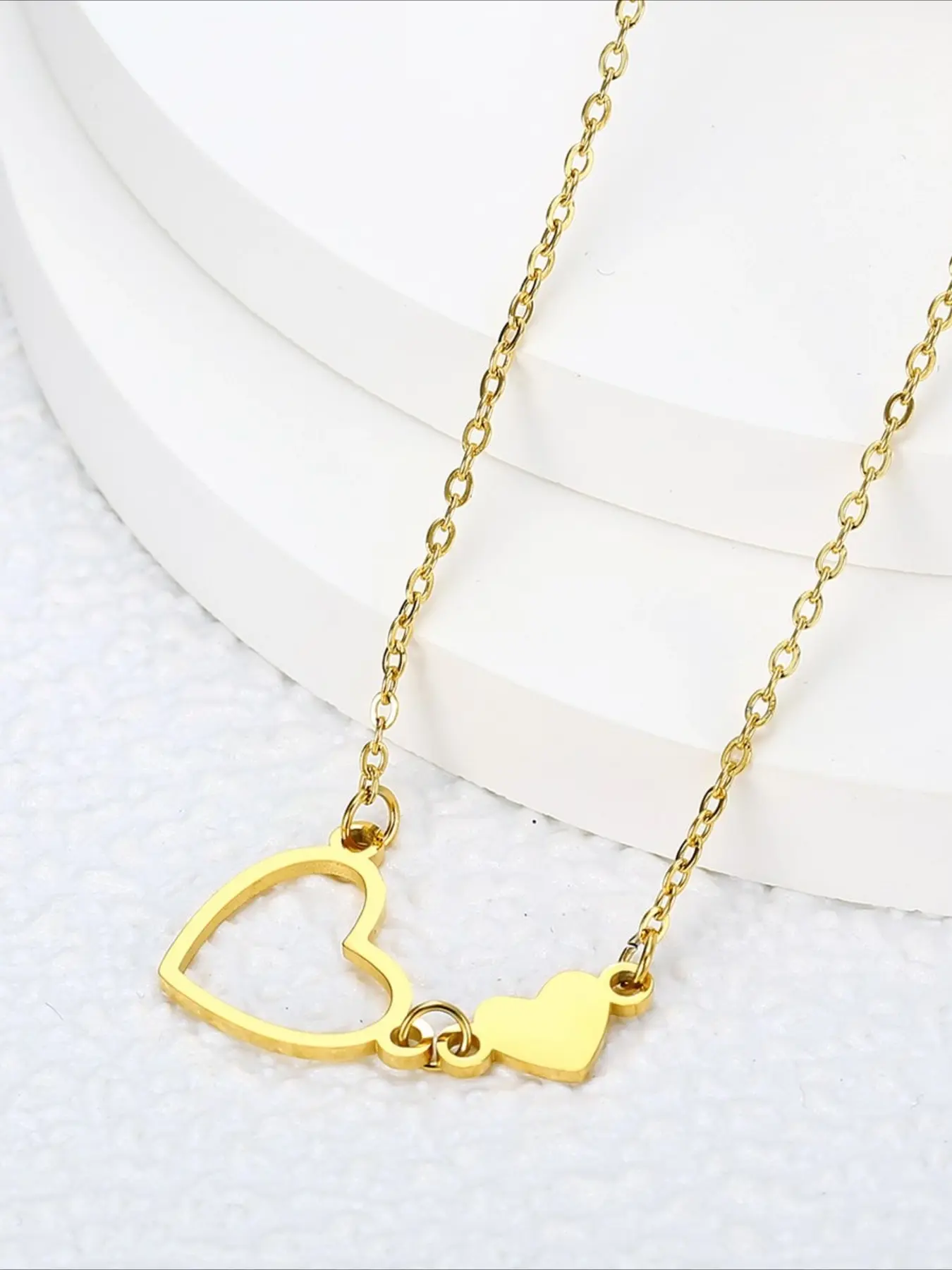 Light Luxury Double Heart Hollowed Out Necklace Made of Stainless Steel That Does Not Fade and Exudes A High-end Feel. It Is A Versatile Necklace for Daily Use