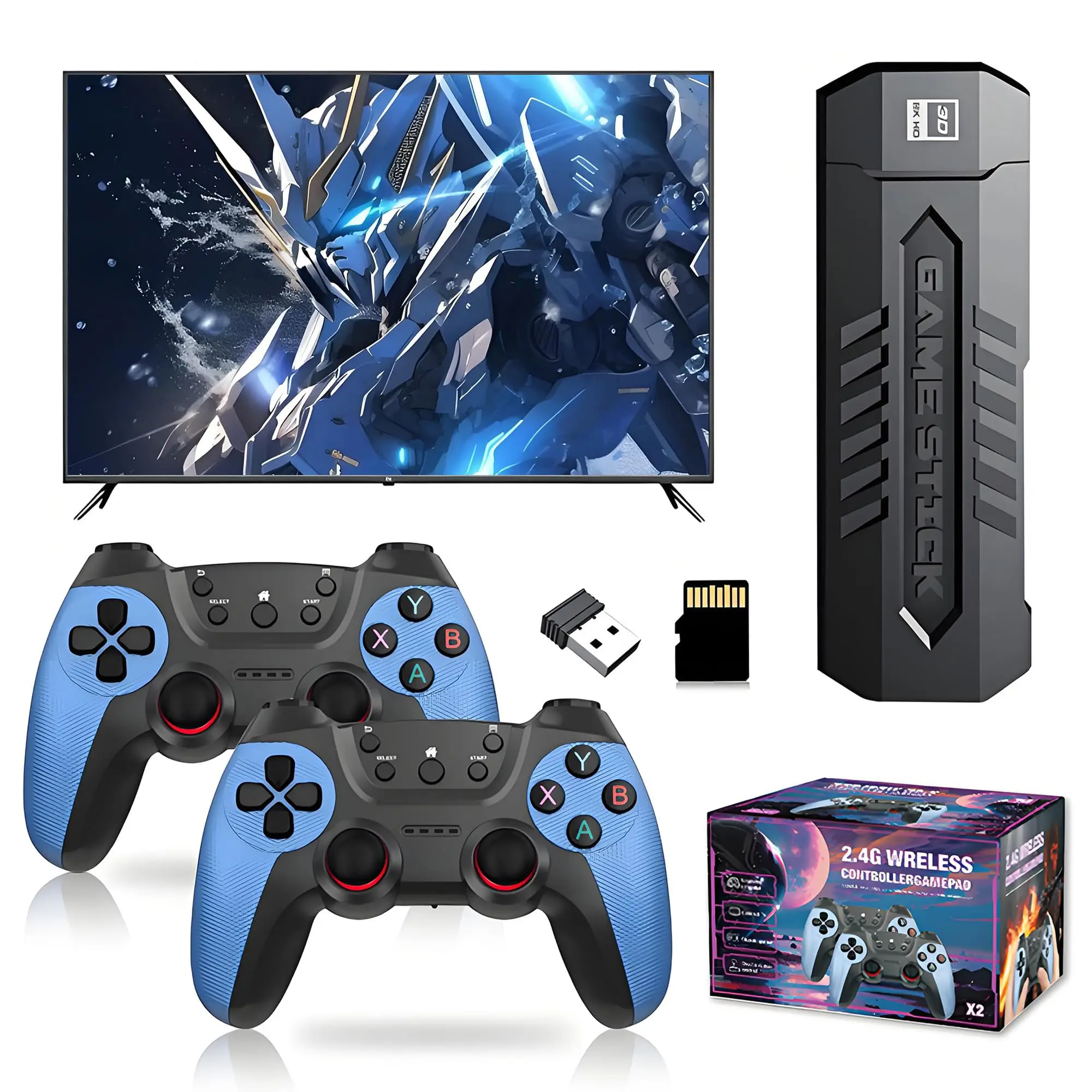 X2 Blue retro game stick with many retro games, 4K high-definition display, plug and play, wireless connection and compact and portable features, it is the first choice for playing games at home and outside, suitable for all ages.