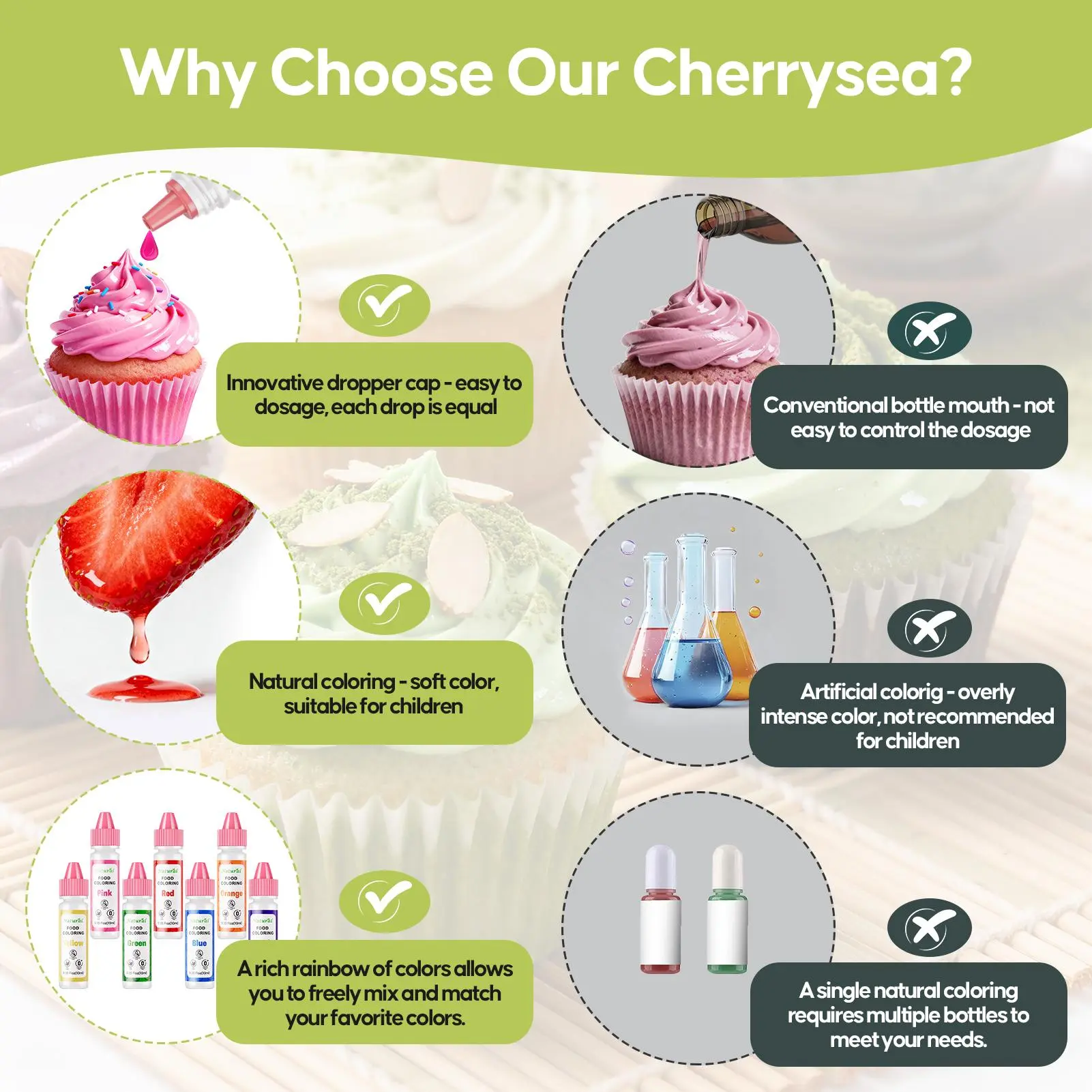 Natural Plant-Based Hues: Vibrant, true-to-life colors inspired by fruits, veggies, and plants. No synthetic dyes—just a pure way to add joyful color to your family’s baking.