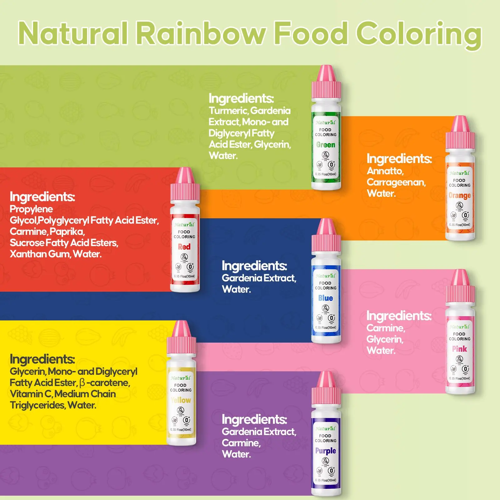 7 Rainbow Colors for Baking: This plant-based kit includes pink, red, orange, yellow, green, blue, and purple. Perfect for birthday cakes, holiday cookies, and festive family desserts.