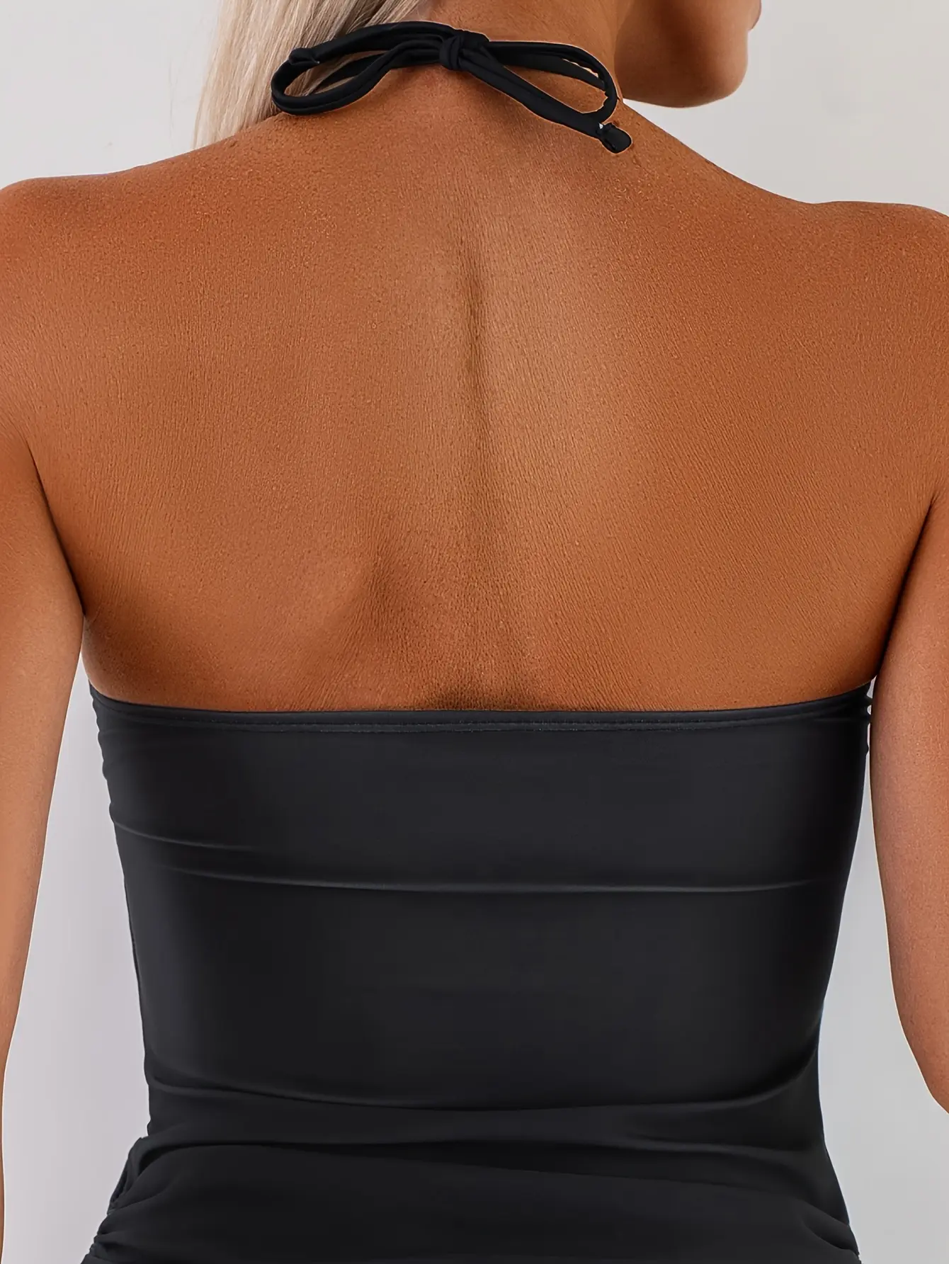 Experience unmatched comfort with this set's fully customizable design. The halter top's adjustable tie closure at the back allows you to find your perfect fit, whether you prefer a secure, sporty hold or a relaxed, open-back look that showcases your figure. The flowy, loose fit of the top provides excellent tummy control, smoothing your midsection while ensuring a comfortable, chafe-free fit all day long. The adjustable drawstring ties at the sides let you cinch the fit to enhance your curves and achieve your ideal silhouette, while the high-cut leg design elongates your figure for a sleek, confident look.