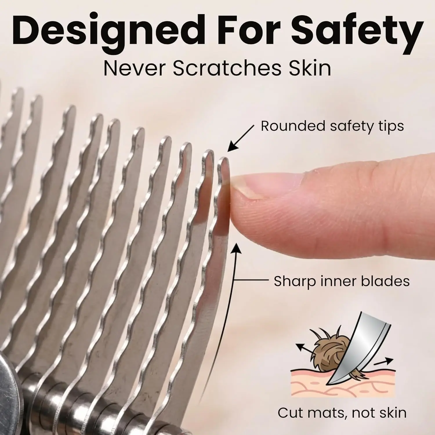 ·Double-Sided with Rounded Blades – Features stainless steel rounded-edge blades that move smoothly through both thick and thin coats, detangle fur with ease, and promote healthy blood circulation.