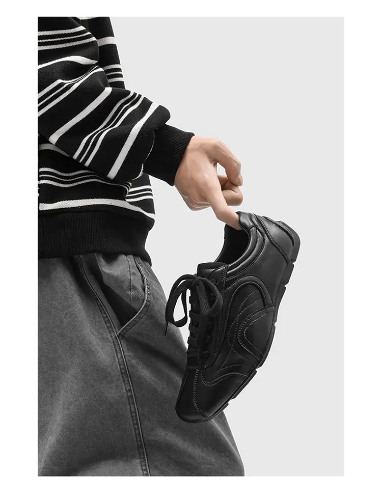 Chunky Derby Shoes Men Platform Black Workwear Casual Leather Shoes for Boy Relaxed Design Footwear