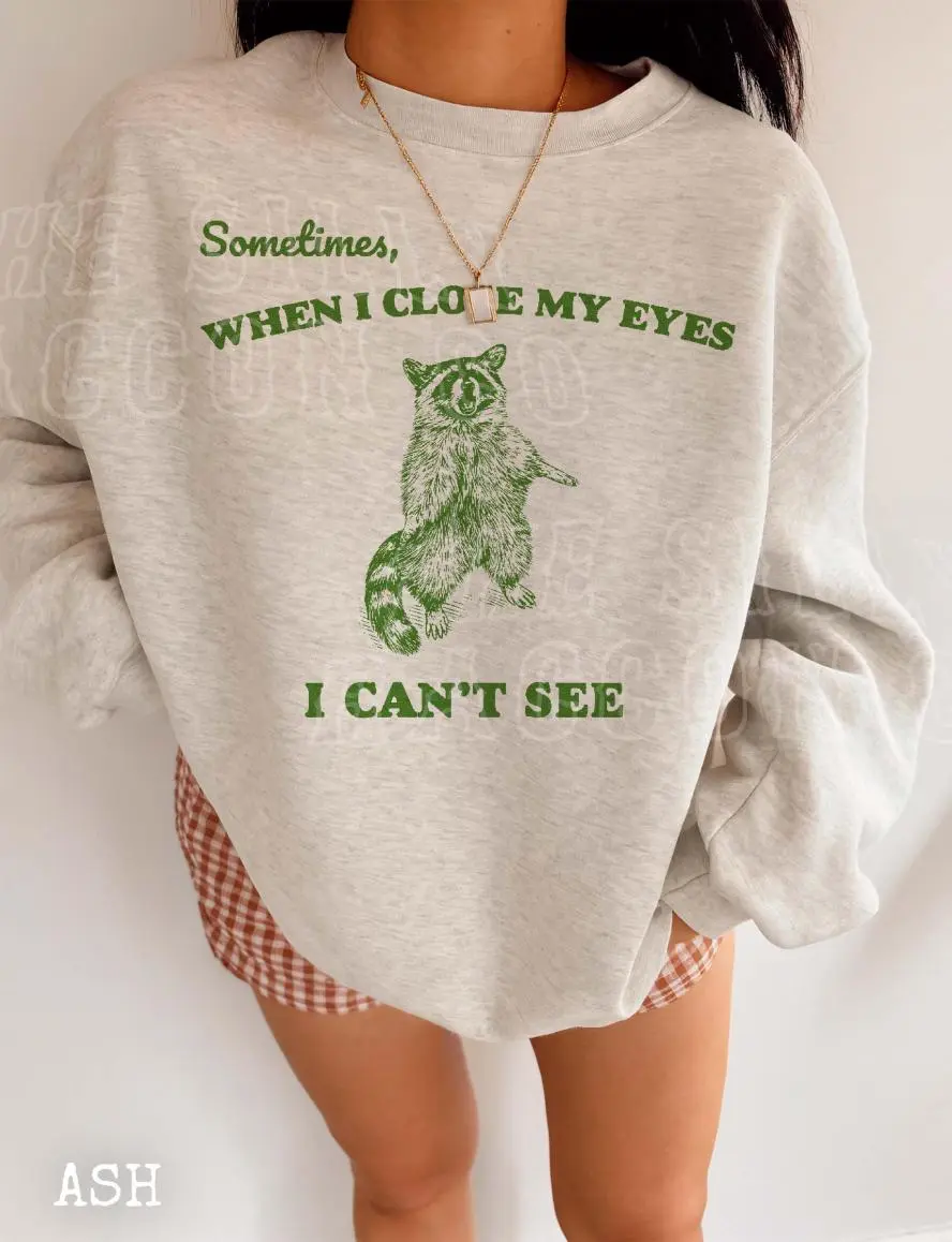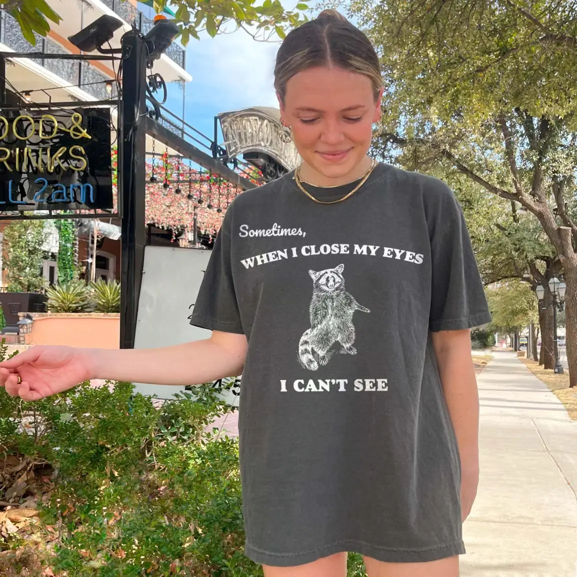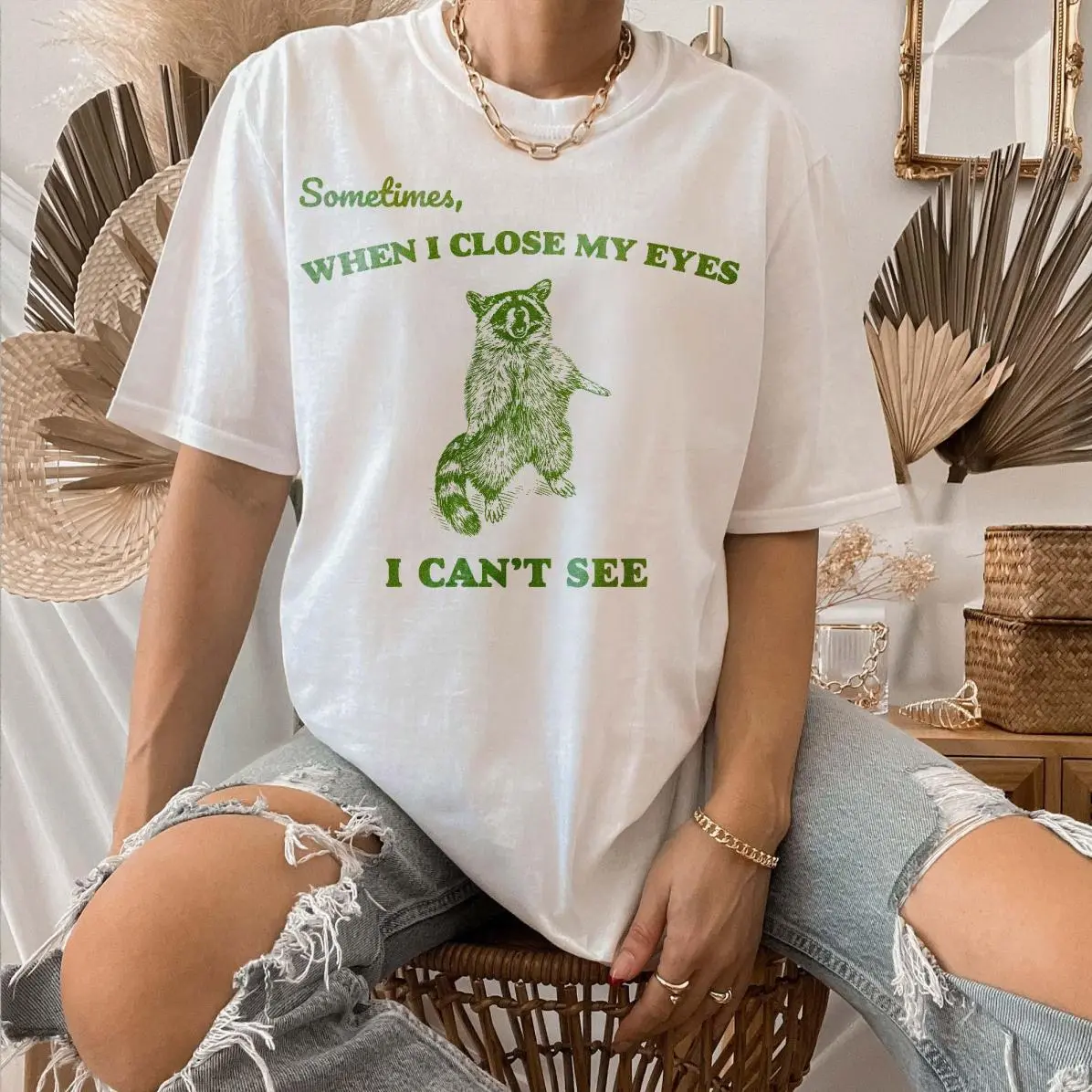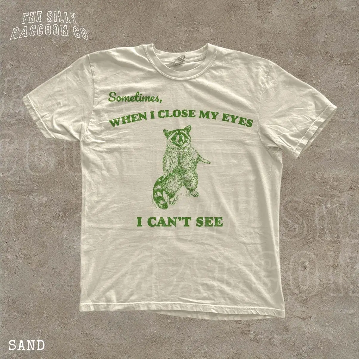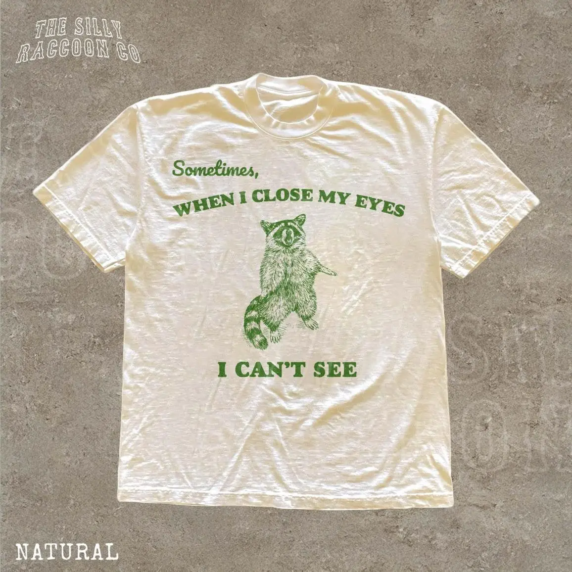 Funny Raccoon Shirt For Men Women, Sometimes When I Close My Eyes I Can't See, Vintage Graphic Tee, Sarcastic Humor Top, Trash Panda Gift, Perfect Fit, Ultimate Comfort, Soft Fabric, Feels Great All Day