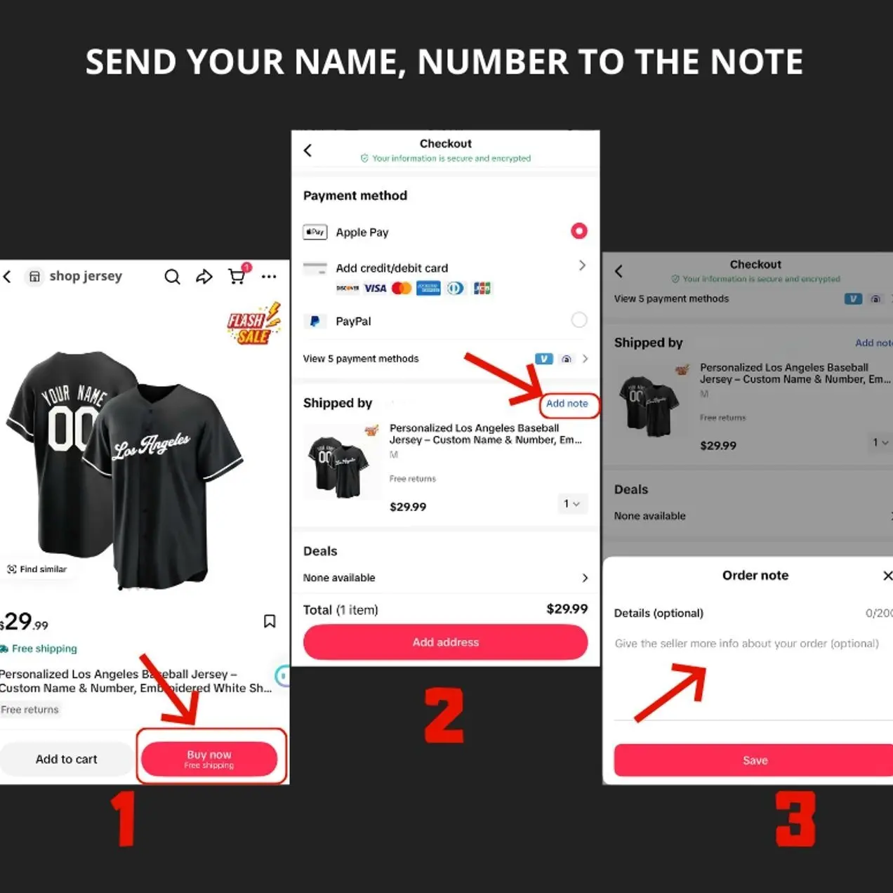 PERSONALIZE:ADD YOUR NAME, NUMBER TO THE ORDER NOTE