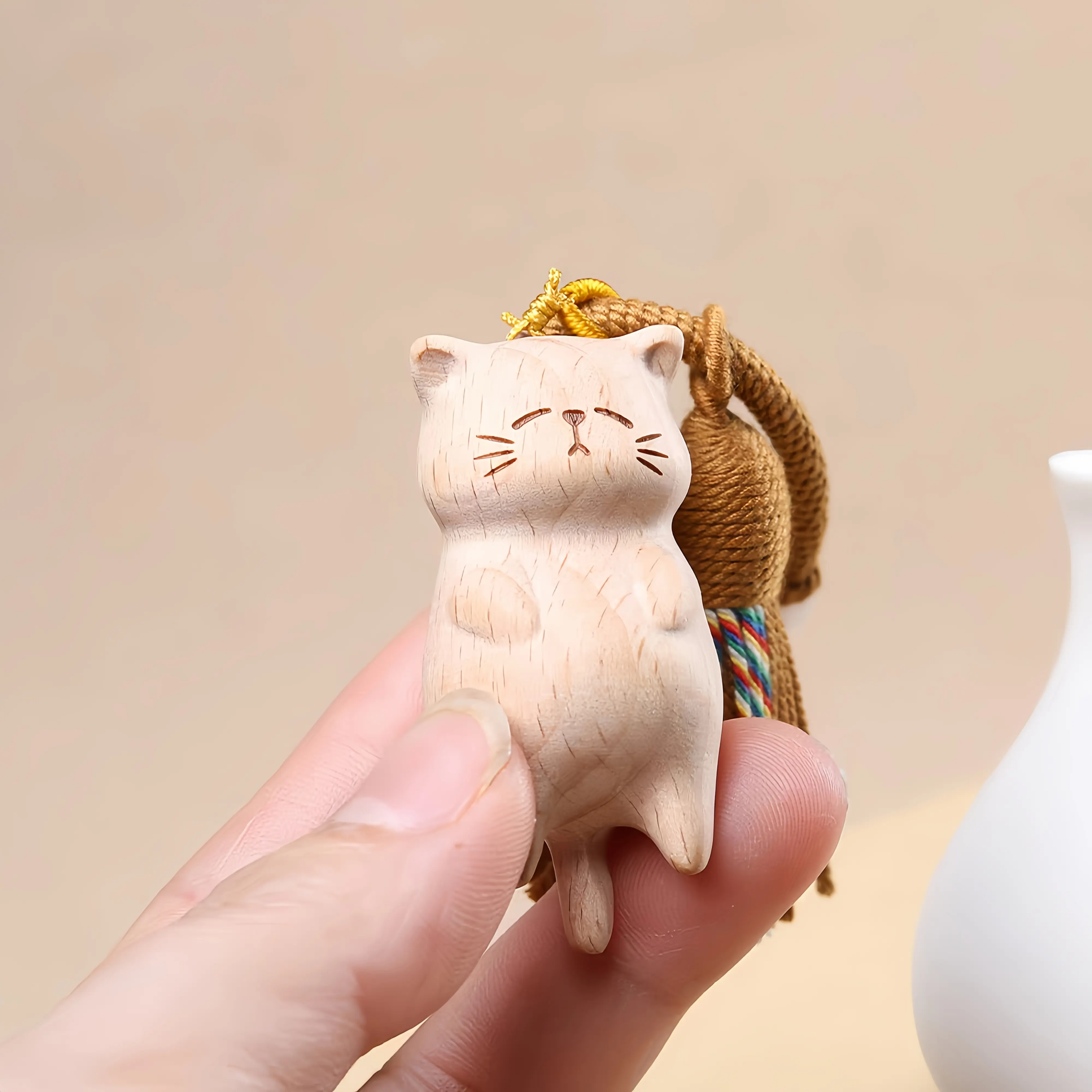 Note: Since each charm is hand-carved from natural beech wood, slight variations in wood grain and carving details are normal—this makes every lazy cat charm unique, carrying its own handcrafted warmth!