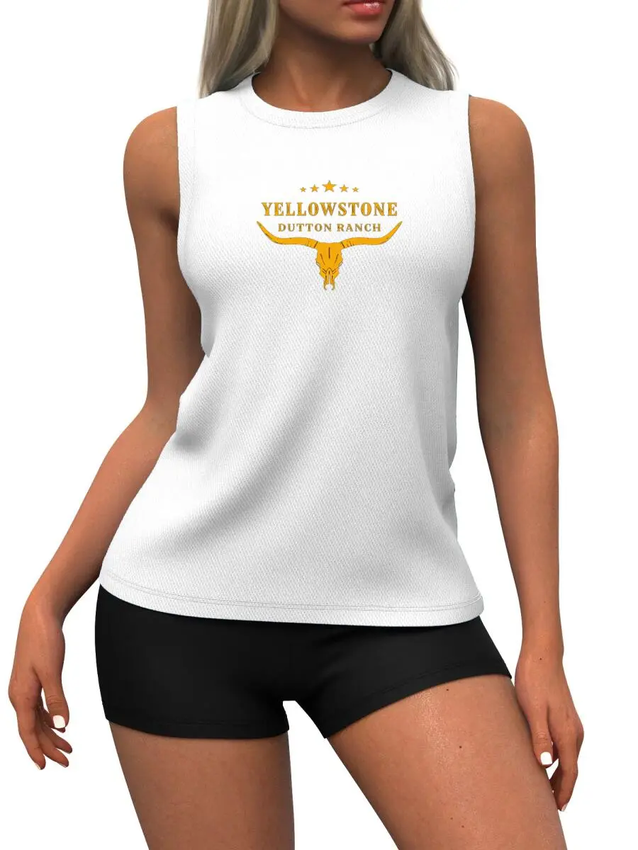 Yellowstone Dutton Ranch Longhorn Skull Quick Dry Mesh Tank Top - 100% Polyester Men's Sleeveless Shirt for Casual & Outdoor Wear