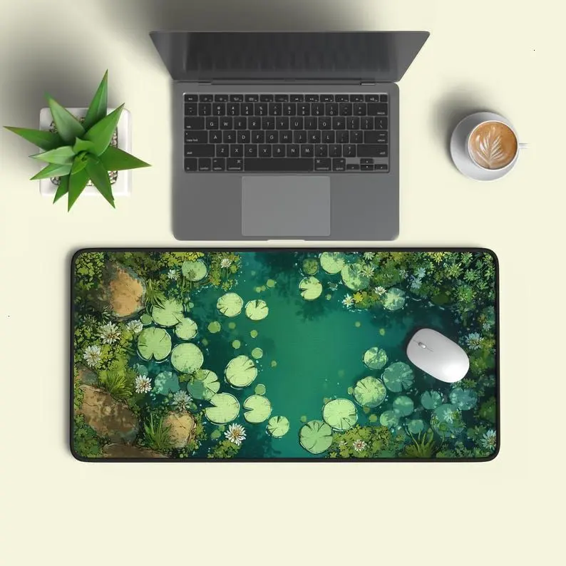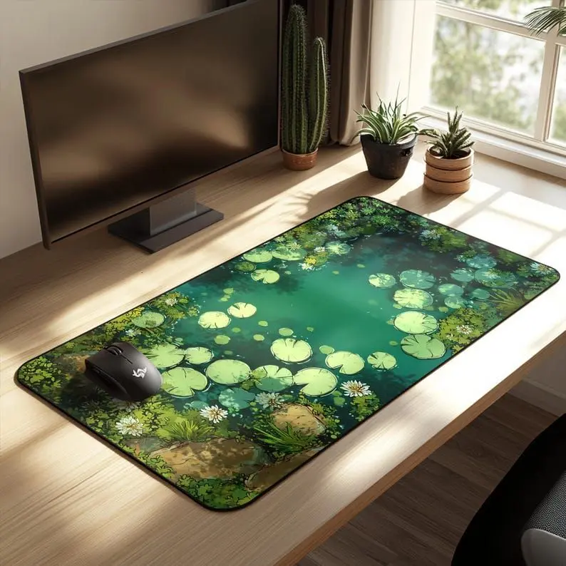 Lily Pad Pond Desk Mat – Green Kawaii Gaming Decor1