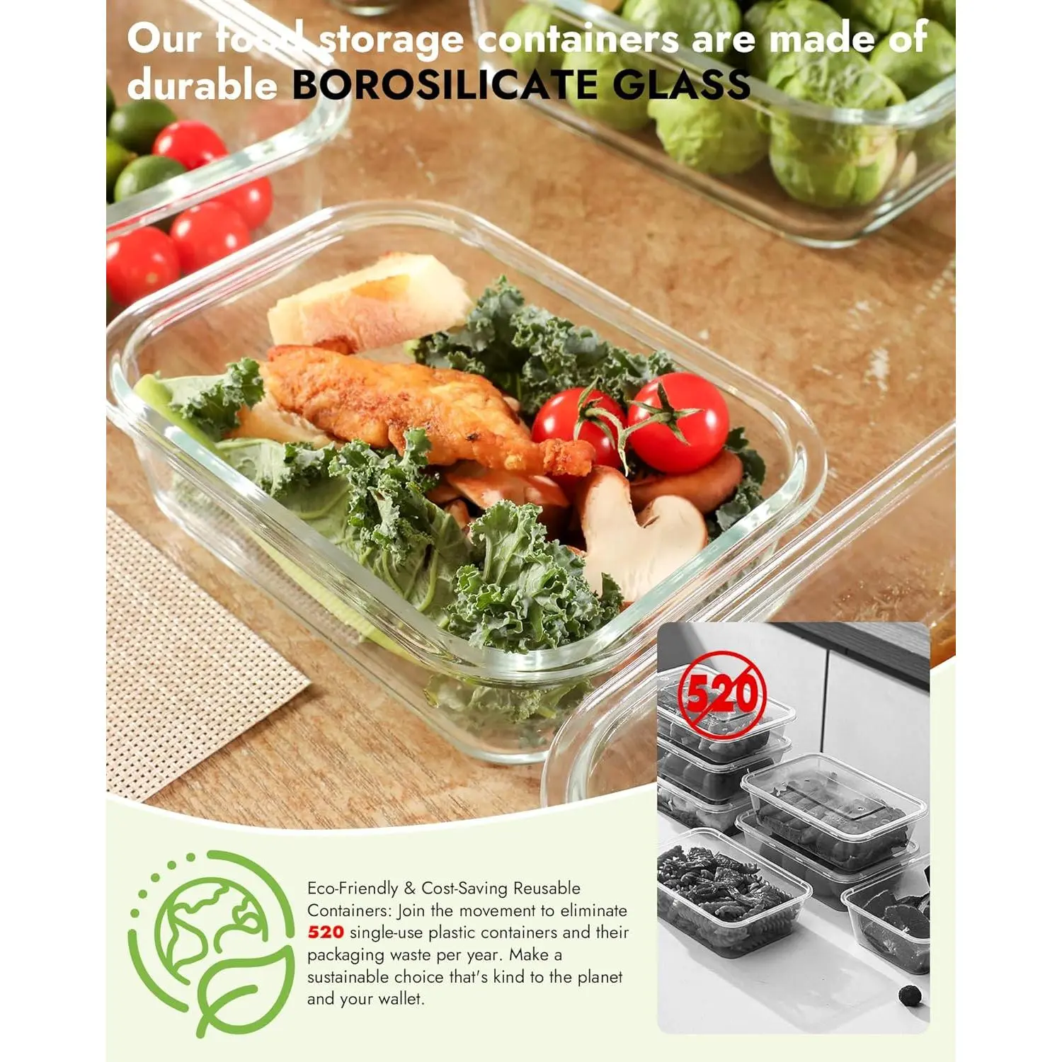 AISOON 24 PCS Borosilicate Glass Food Storage Containers Set,Meal Prep Containers,Airtight Glass Storage Containers with lids,BPA Free,Freezer&Oven Safe Kitchen Utensils