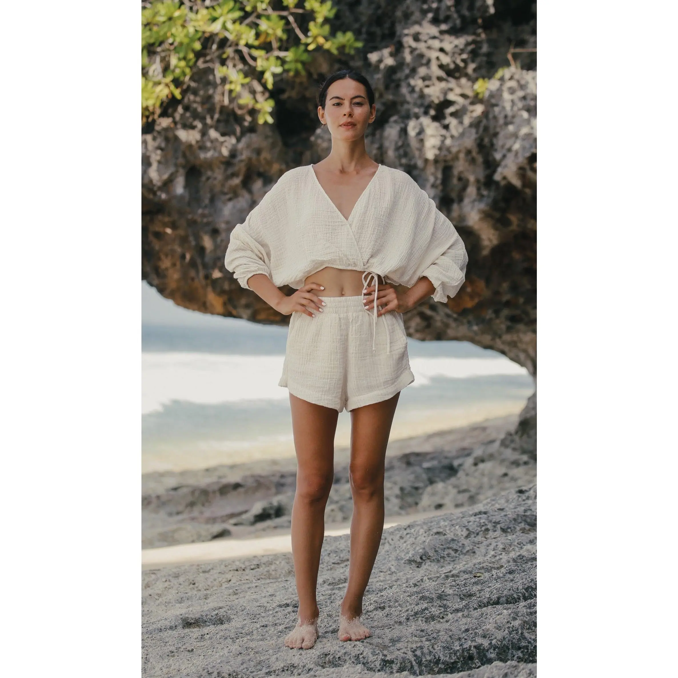 Effortless Echo Boy Short Gold Stripes is an ideal style for brunch dates or a coffee break. Designed with a breeze from 70’s, will be a timeless piece in your wardrobe that withstands trends for supporting slow fashion. Made with sustainability in mind, this short features breathable fibers. This high elastic waisted short is slightly oversized with side pockets, allowing you to move freely throughout the day.