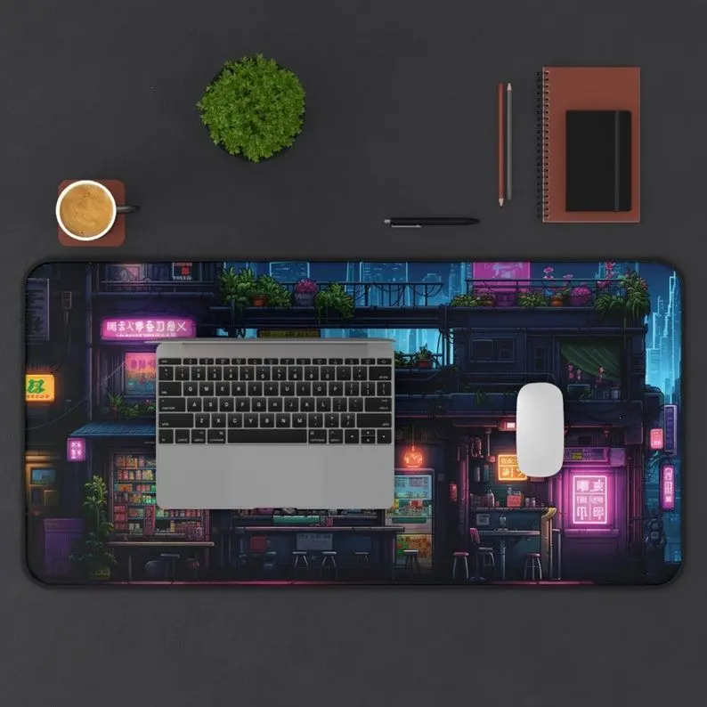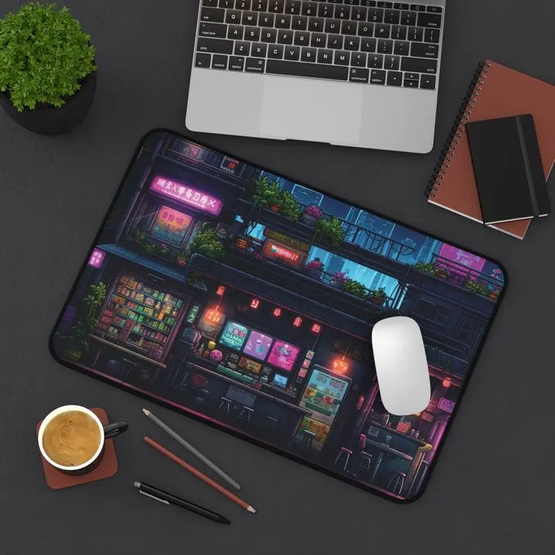 Cyberpunk Modern City, Ramen Shop Desk Mat, Neon Lights Desk Pad, Gaming Mousepad XL, Gaming Playmat MTG1