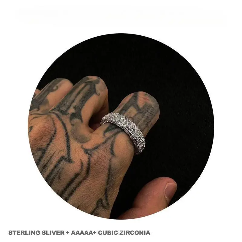 Command attention with this bold eternity band, meticulously crafted from hypoallergenic copper in a polished gold or silver finish. Its full iced-out design dazzles with 100+ prong-set cubic zirconia stones, offering diamond-like brilliance for any occasion. Adjustable sizing (US 6-10) and a substantial 100g weight ensure a secure, comfortable fit with undeniable presence.