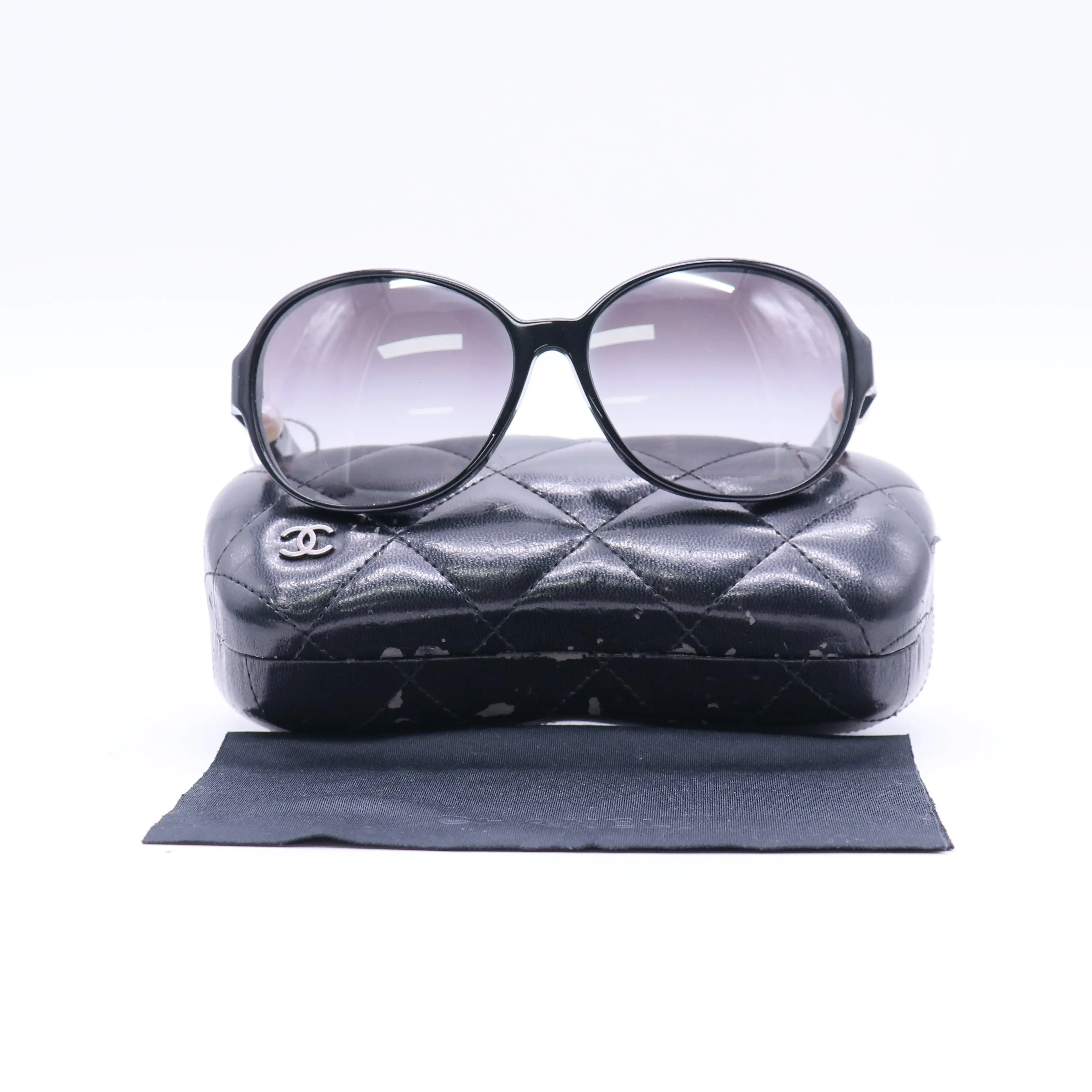 Pre-owned Chanel Black Glitter Acetate Frame Pearl CC Sunglasses Twins LDJ3737