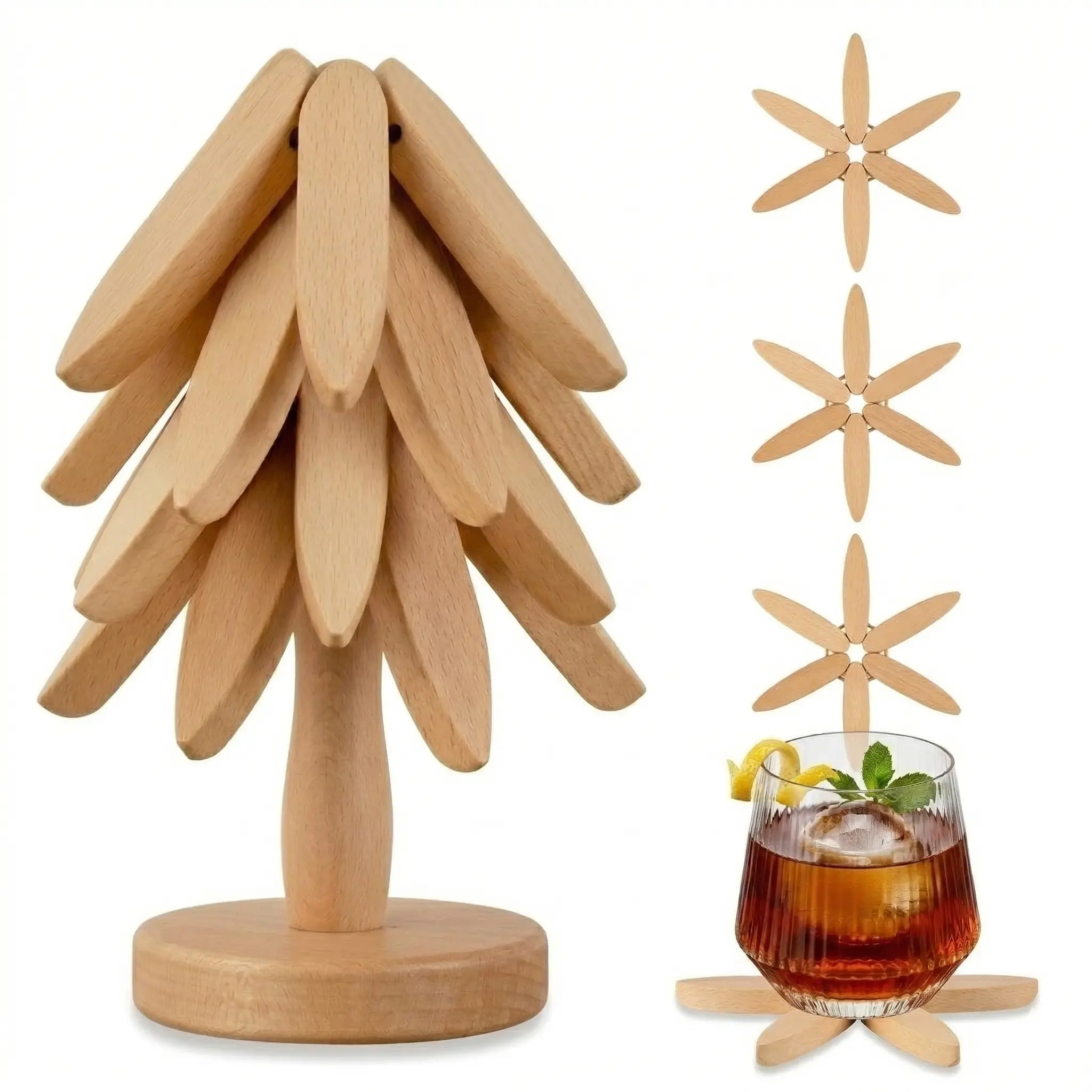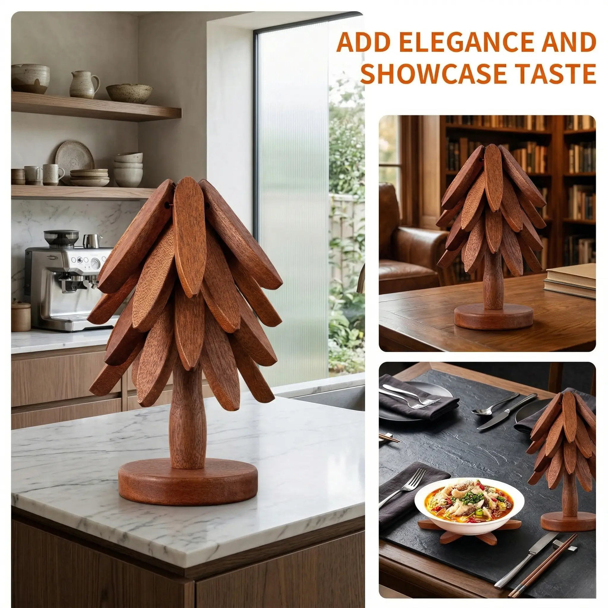 Space-Saving Decor: When not in use, it stands as a stunning wooden tree on your countertop—functional decor at its finest.