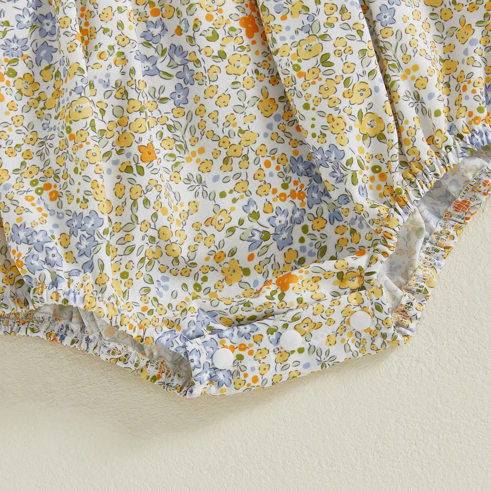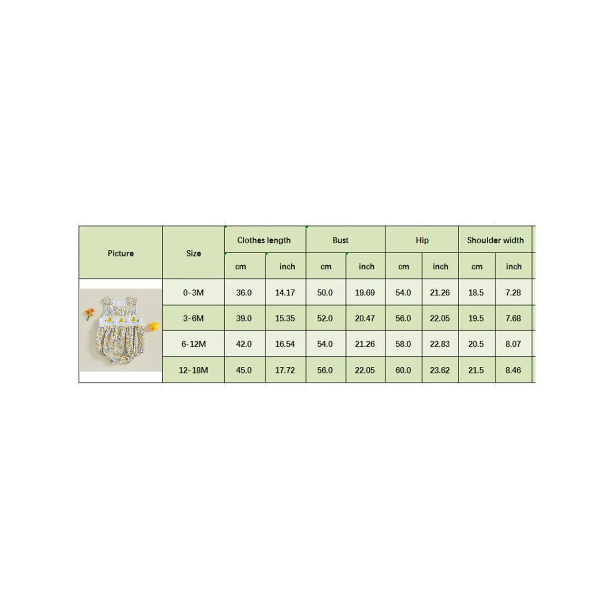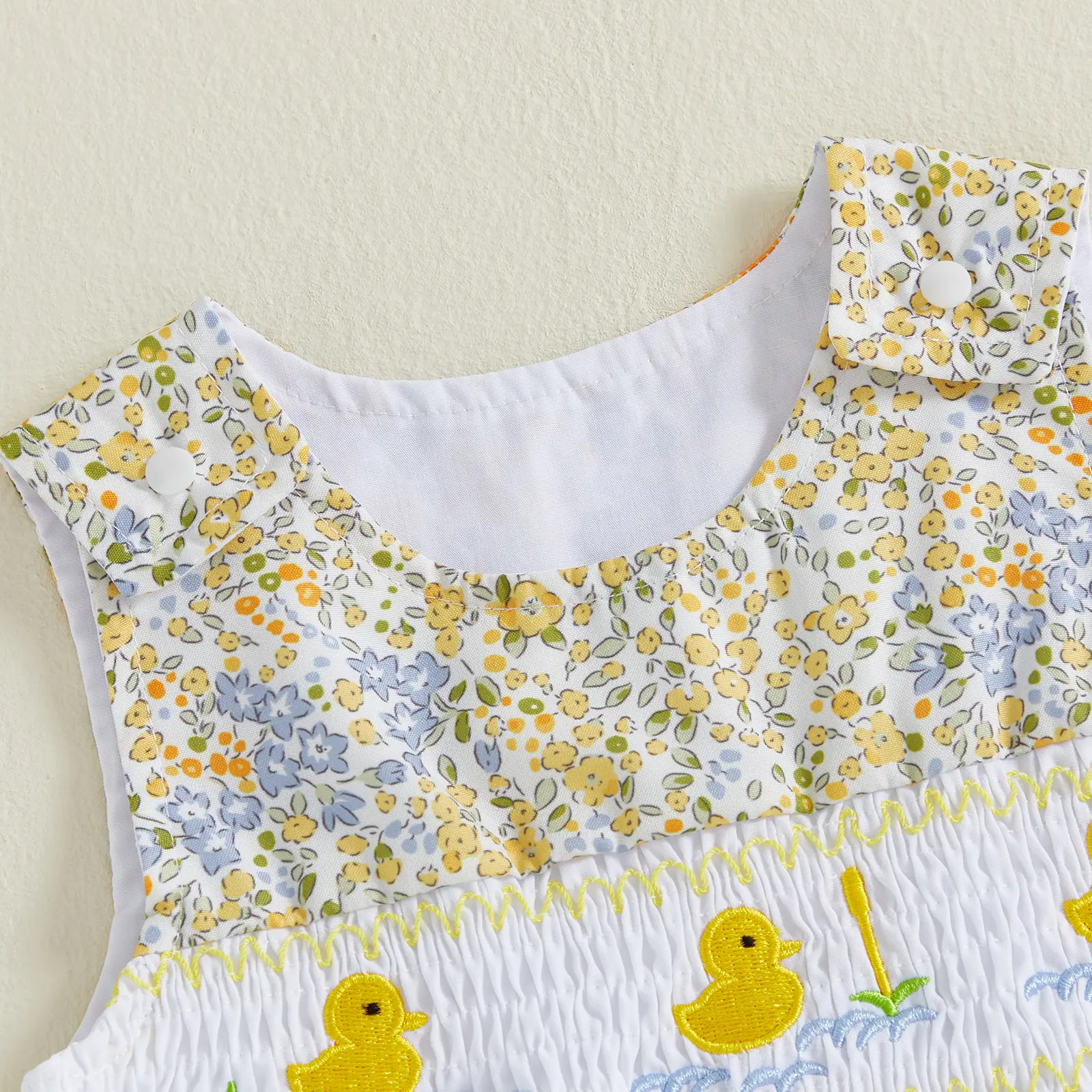 Baby Girl Duck Embroidery Romper Sleeveless Round Neck Sweet Floral Jumpsuit